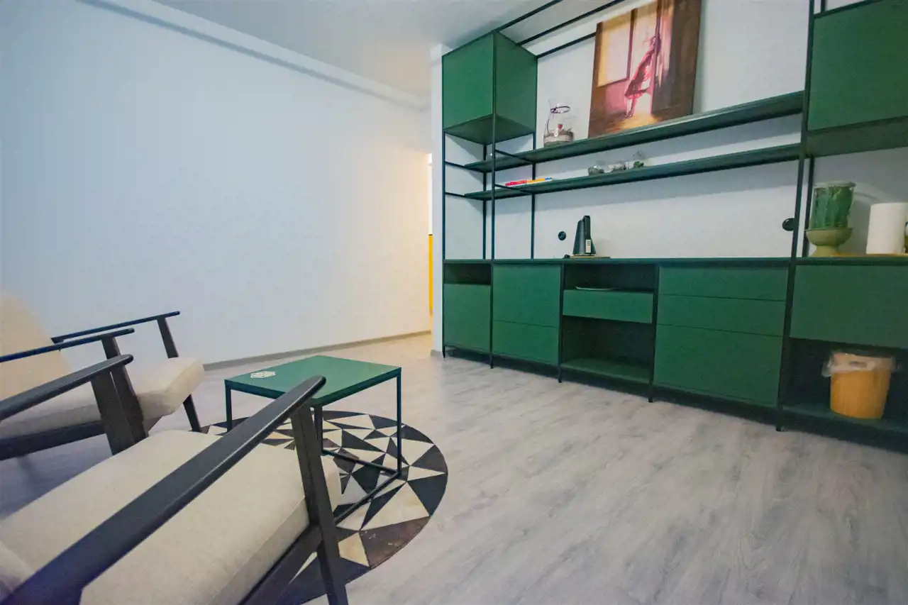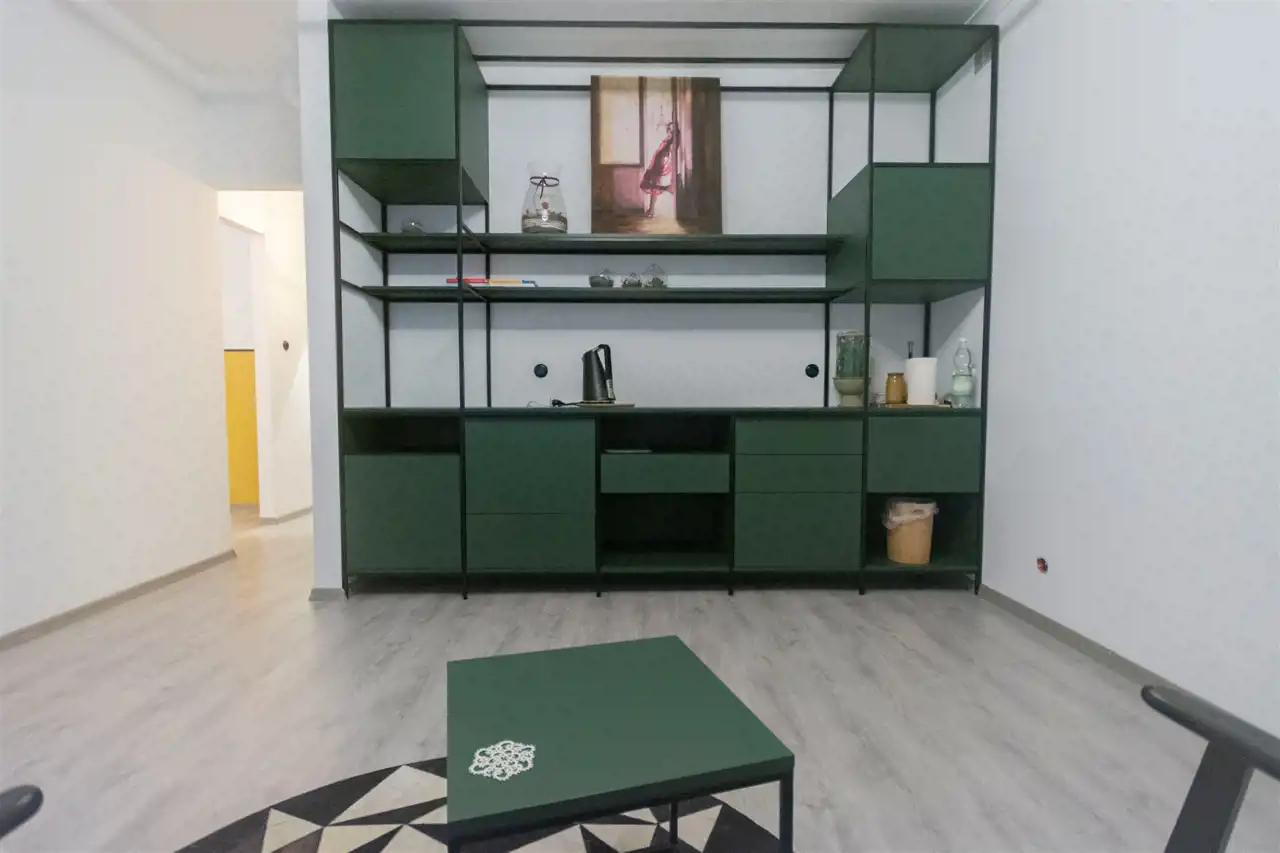 - Dwa niezależne pomieszczenia , gabinety, w tym jeden z trwałą zabudowa w która wkomponowana jest zmywarka do naczyń.