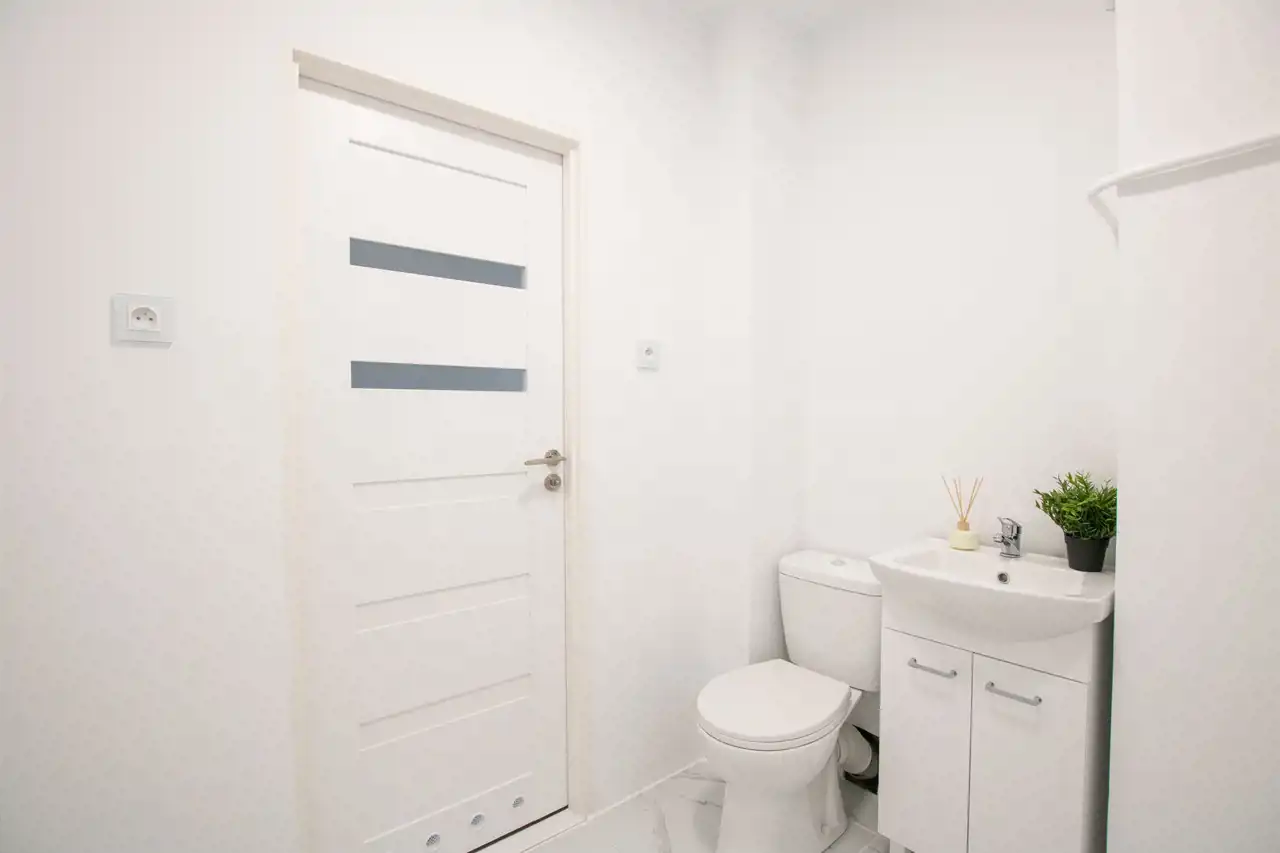 -Łazienka: zlew z szafką, WC i miejsce na pralkę, prysznic czy wannę oraz meble łazienkowe