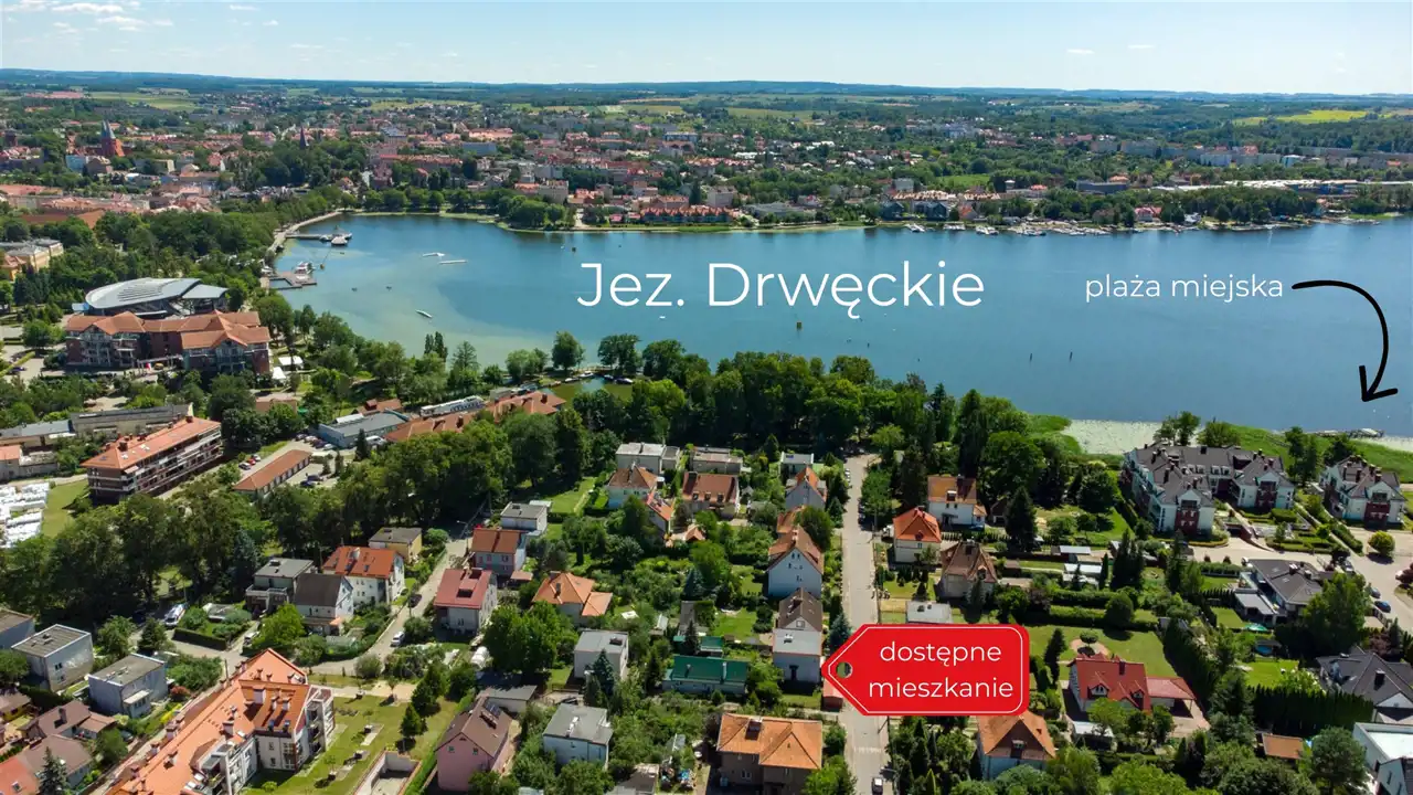 A lokalizacja? 130 metrów do Jeziora Drwęckiego. Spacer zajmuje chwilę, a daje dostęp do natury każdego dnia. Jednocześnie wszystko, co potrzebne, masz w zasięgu ręki.
