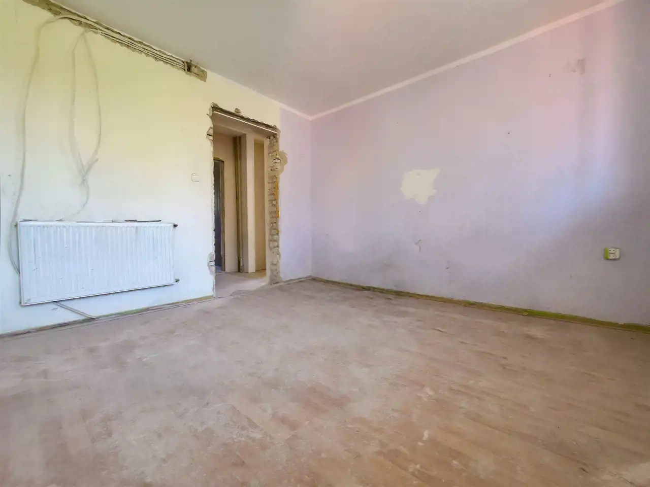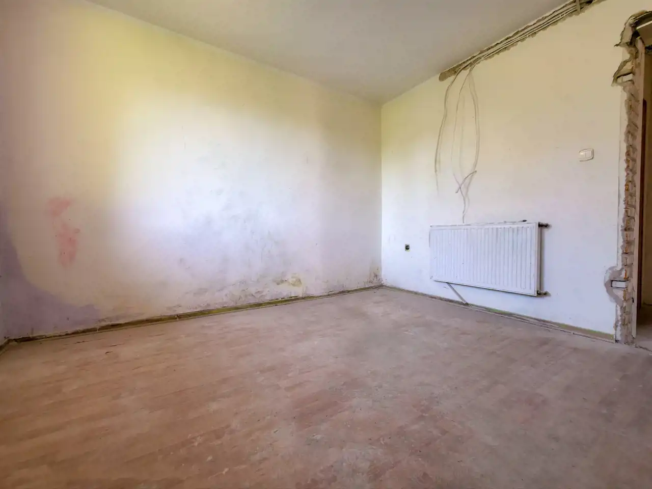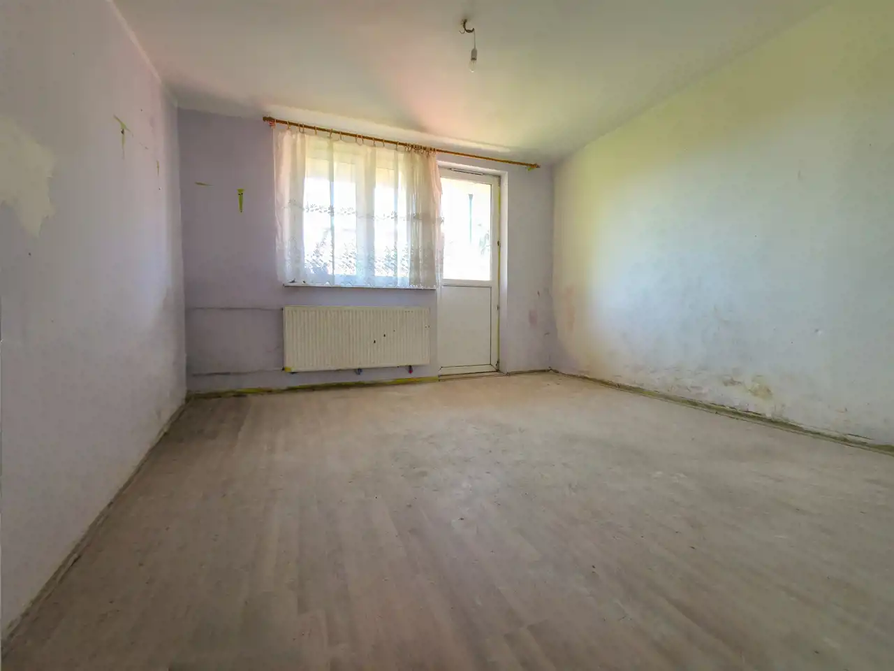 - Układ: kuchnia z jadalnią, salon, sypialnia, łazienka, korytarz (można zrobić salon z aneksem i 2 sypialnie)