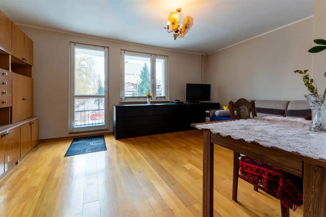 Oto solidne, jasne mieszkanie na parterze. Parter to tutaj duży plus – pare schodów, łatwy dostęp, wygoda na co dzień (szczególnie jeśli masz dzieci, wózek czy psa).