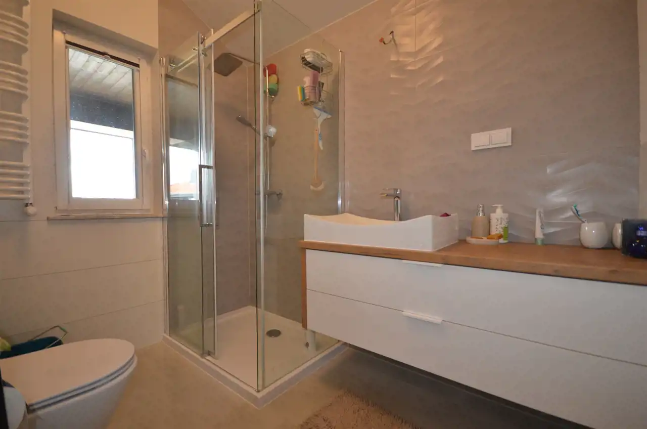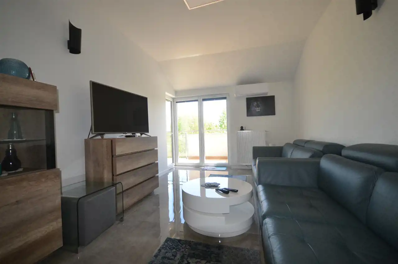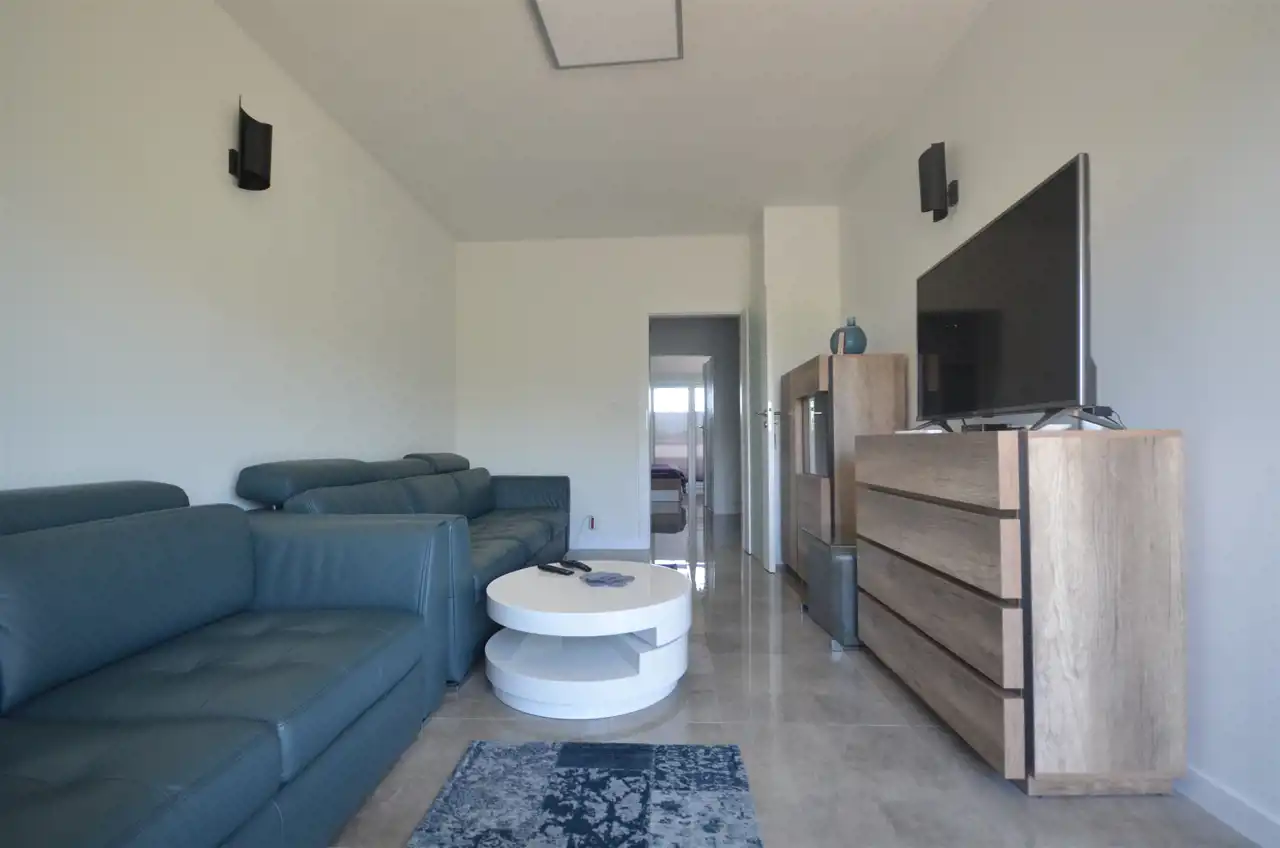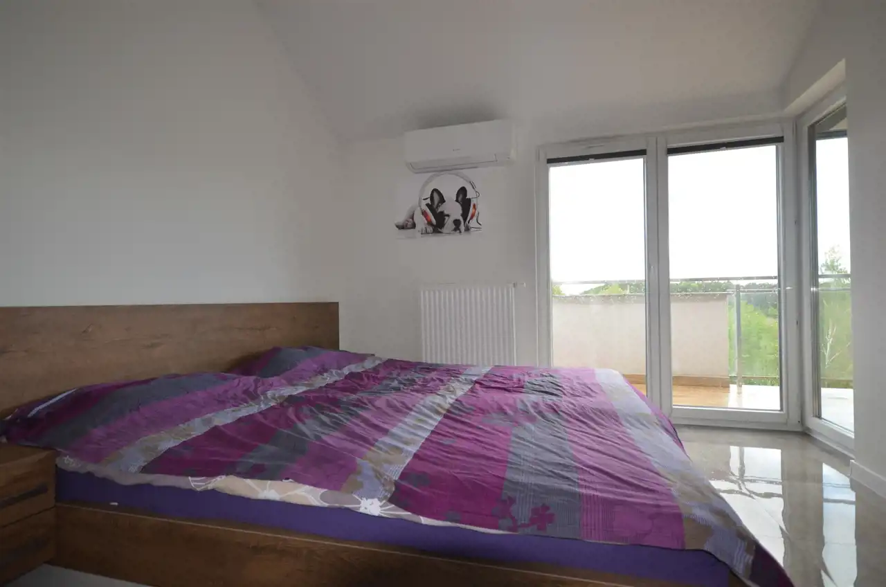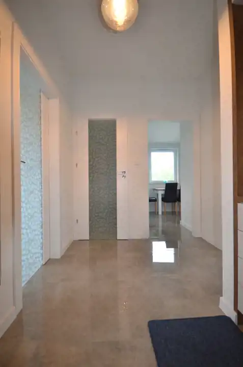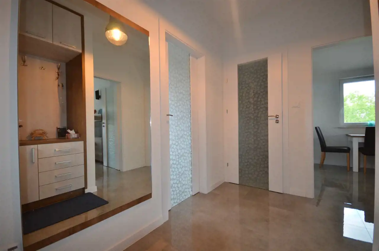 W pokojach zamontowana klimatyzacja, ozdobne drzwi z dużym przeszkleniem na podłodze gres .