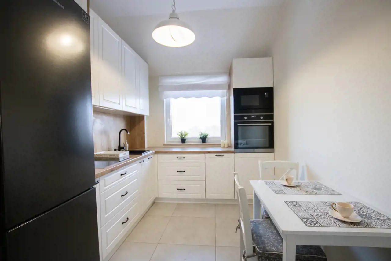 -Kuchnia: meble pod zabudowę, piekarnik, mikrofalówka, płyta indukcyjna, zmywarka, pochłaniacz, stół z krzesłami
