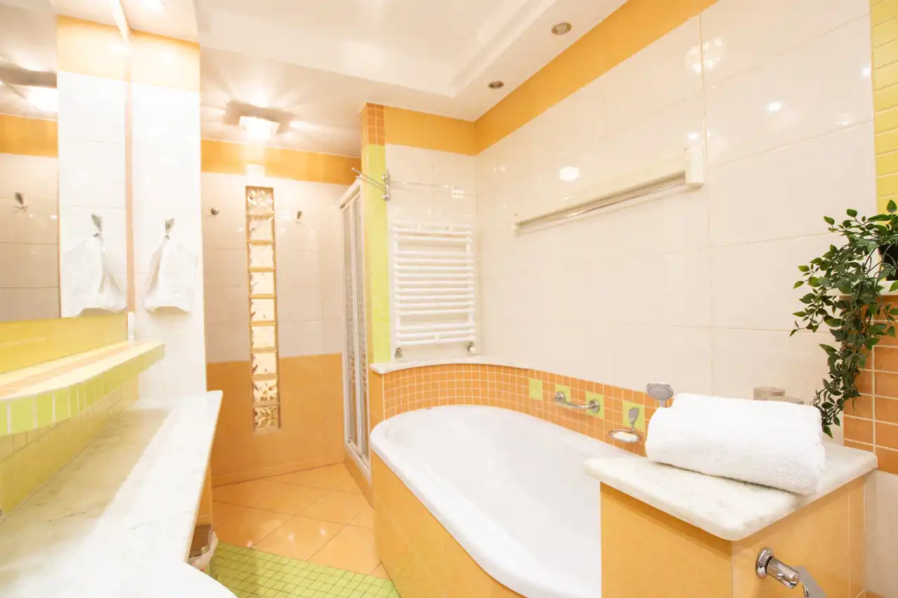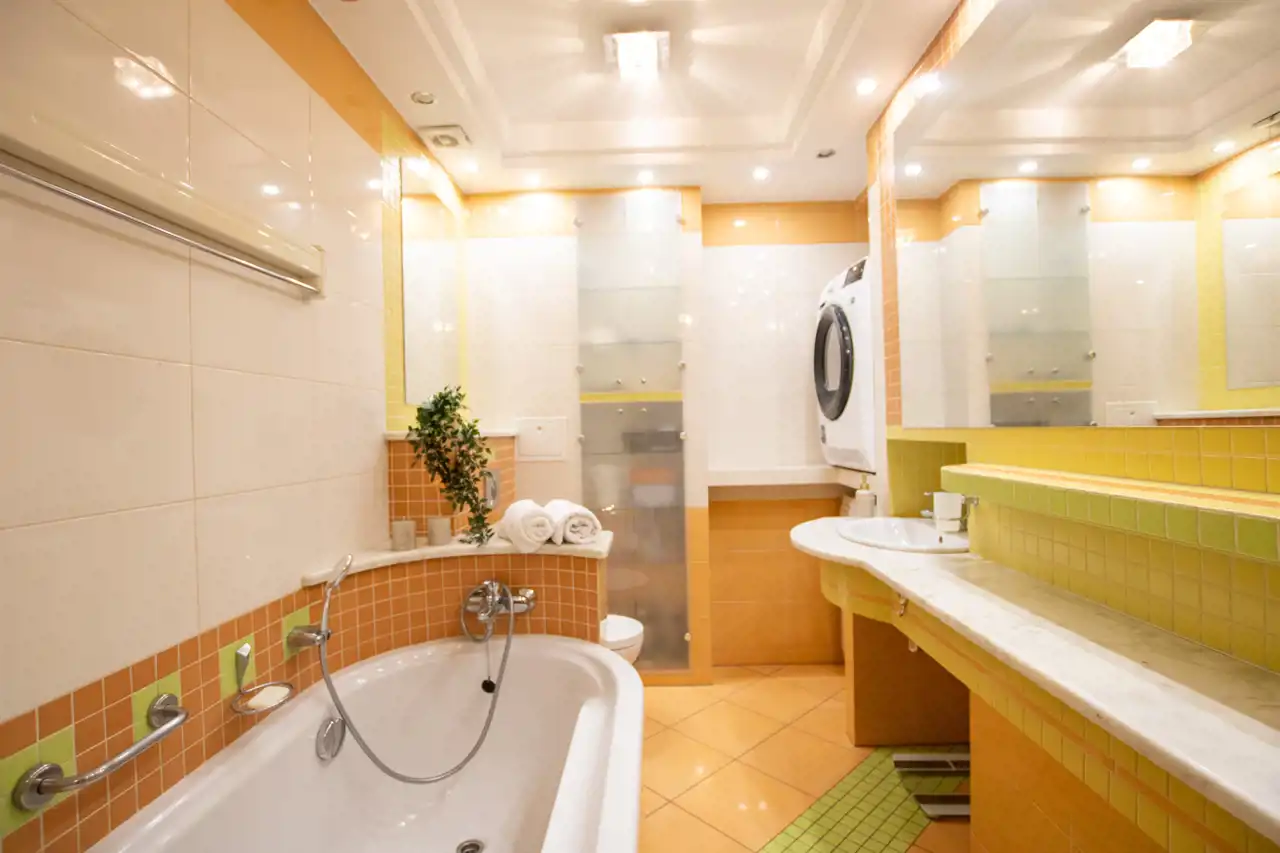 -Łazienka: przestronna, nowoczesna, wyposażona w oddzielny prysznic i wannę; pralka i suszarka.