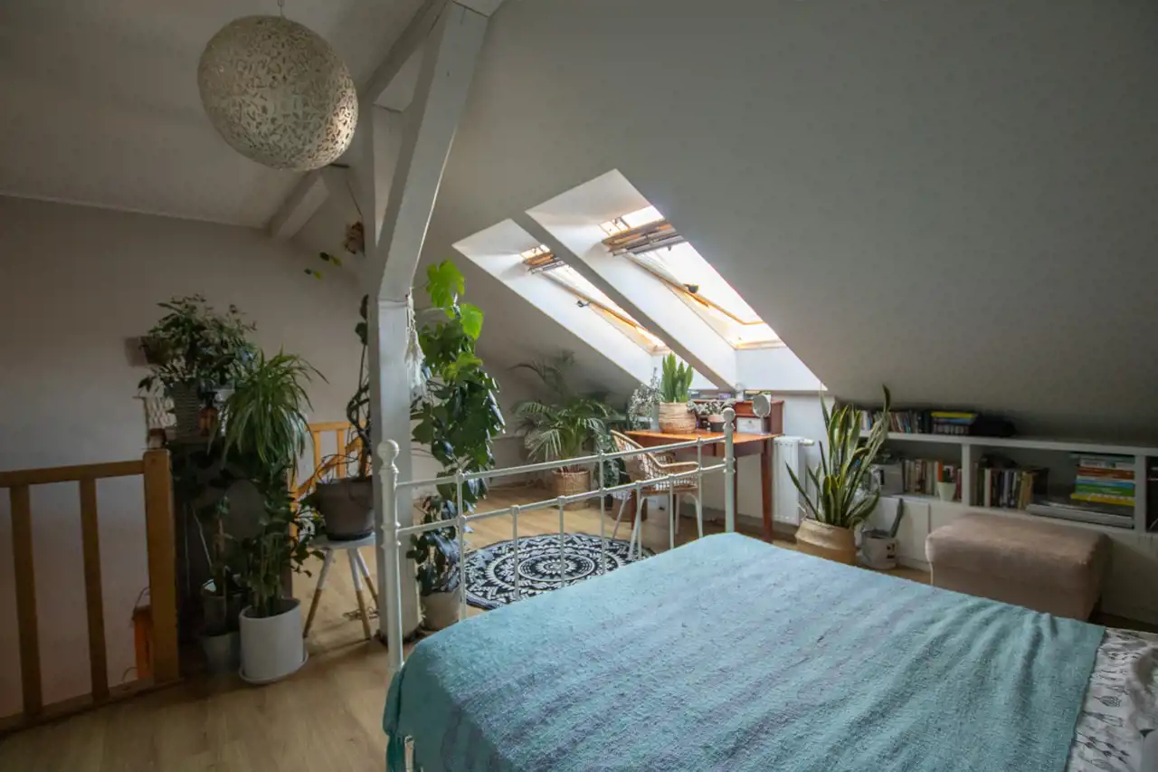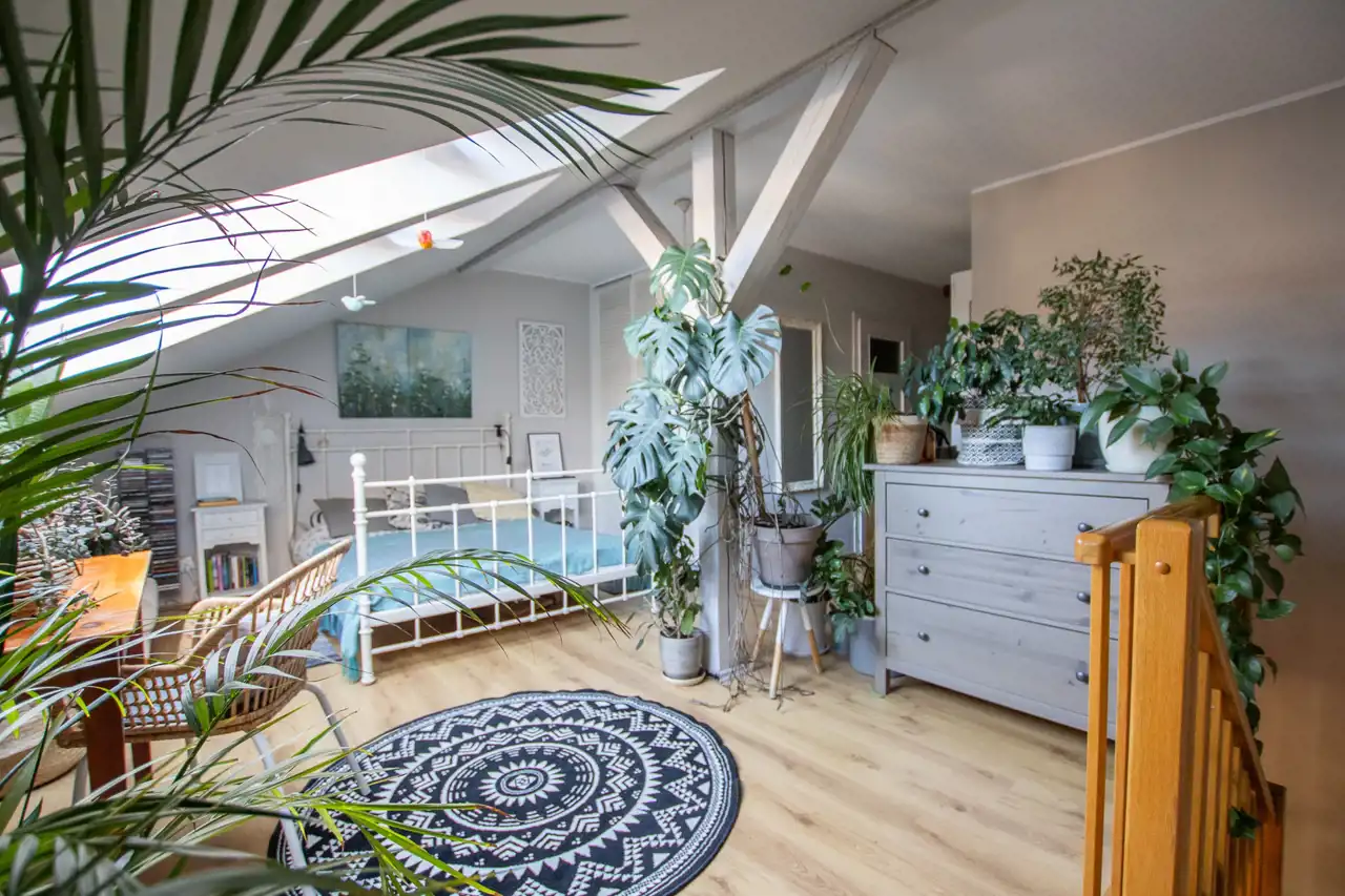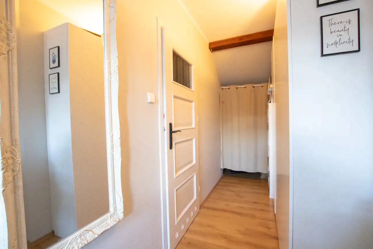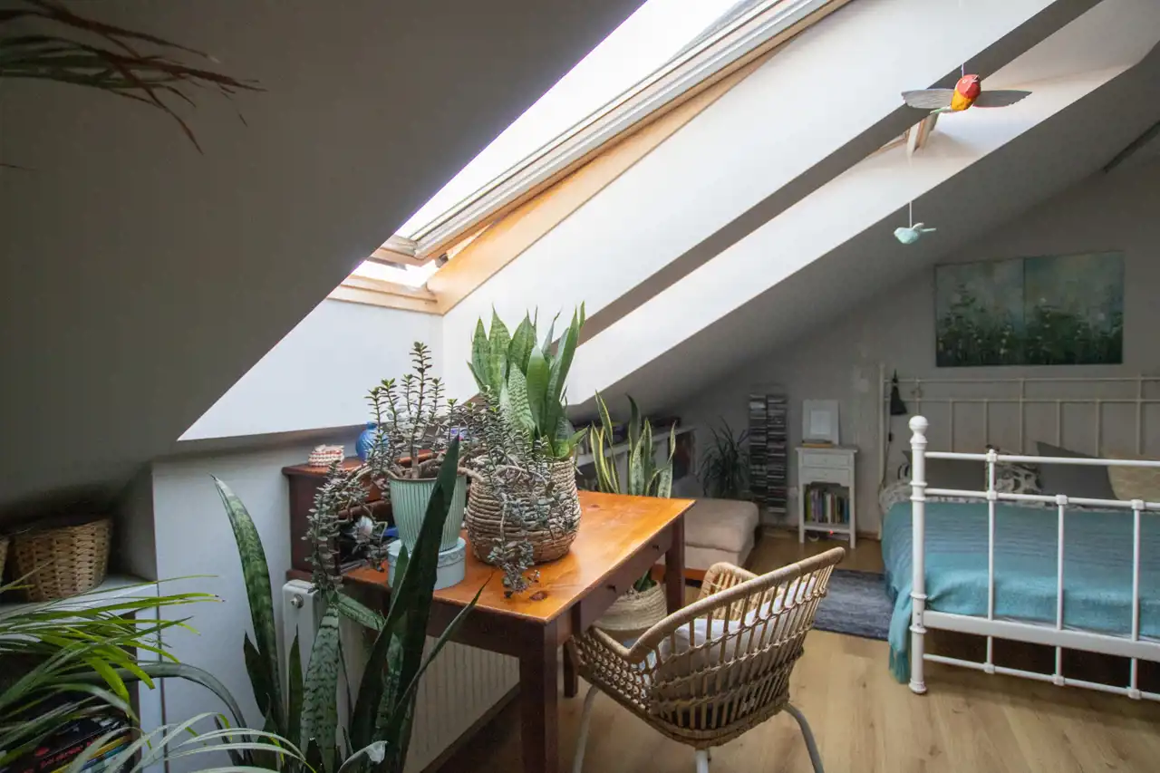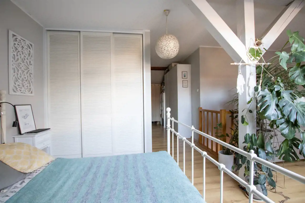 - Na poddaszu znajduje się garderoba, która zapewnia dodatkową, praktyczną przestrzeń do przechowywania.