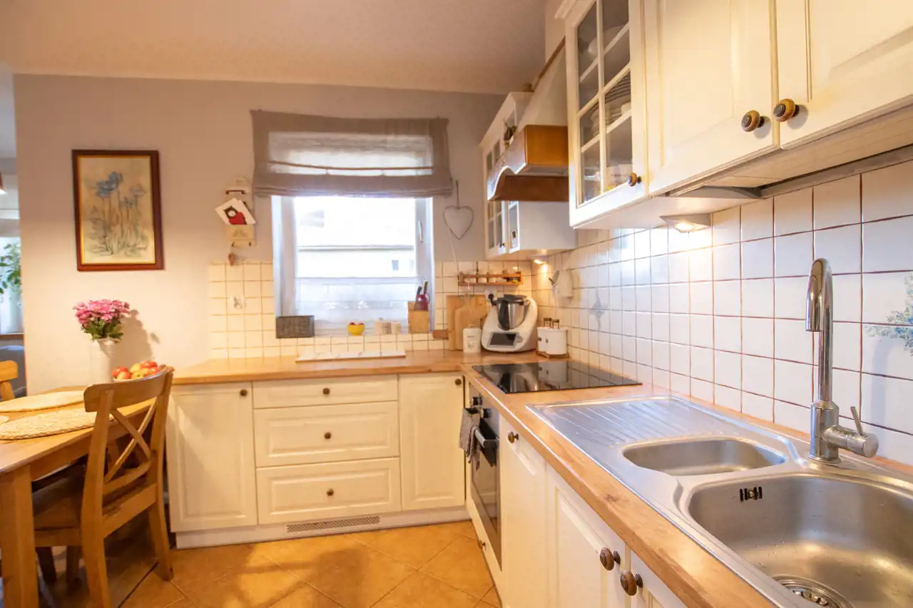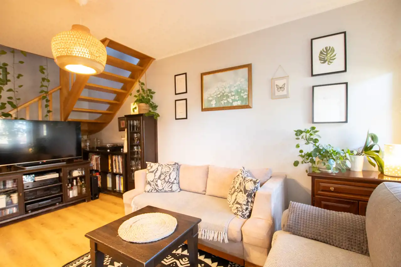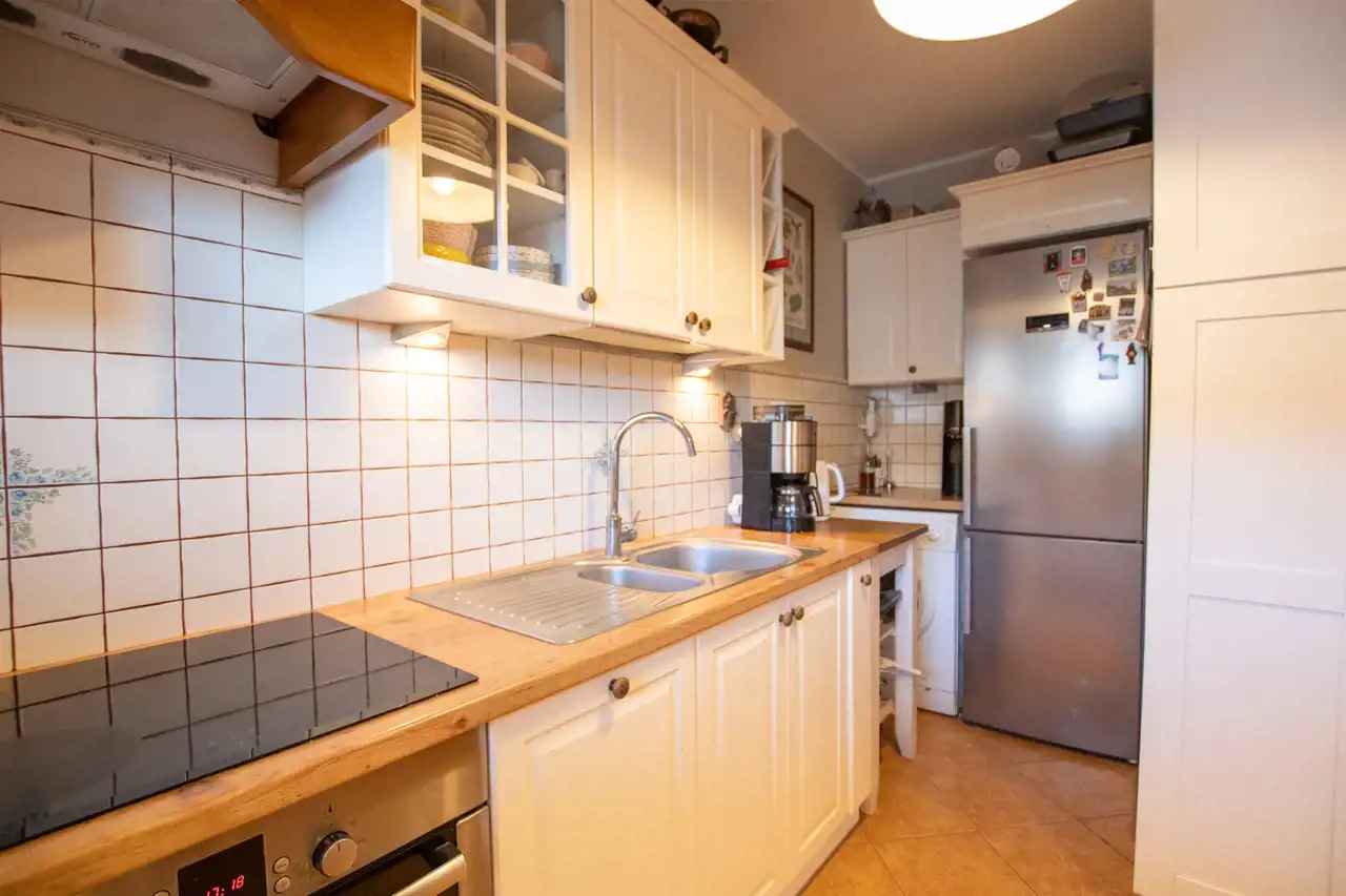 - Łazienka: Narożna wanna, umywalka z miejscem do przechowywania, wc