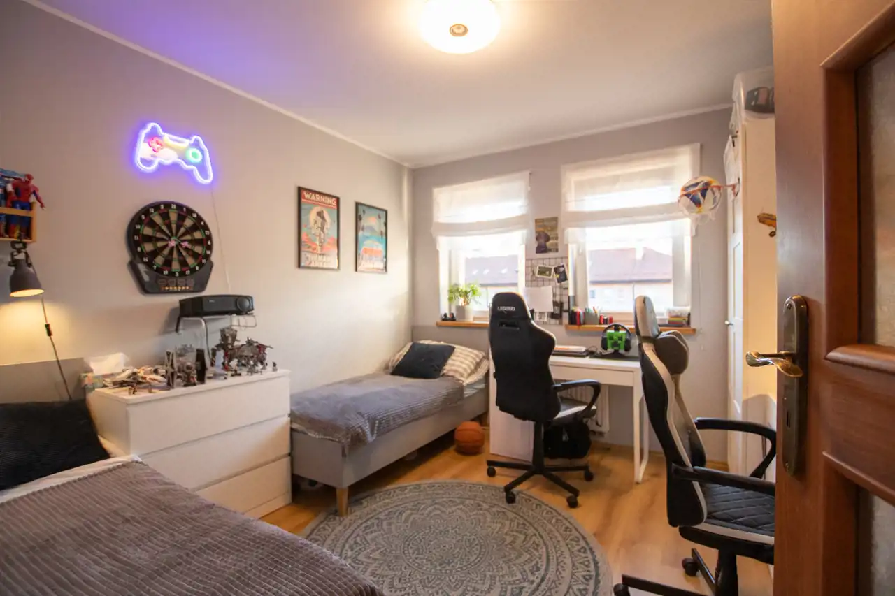 - Pokój : Dwa łóżka, dwa biurka,szafa, komoda