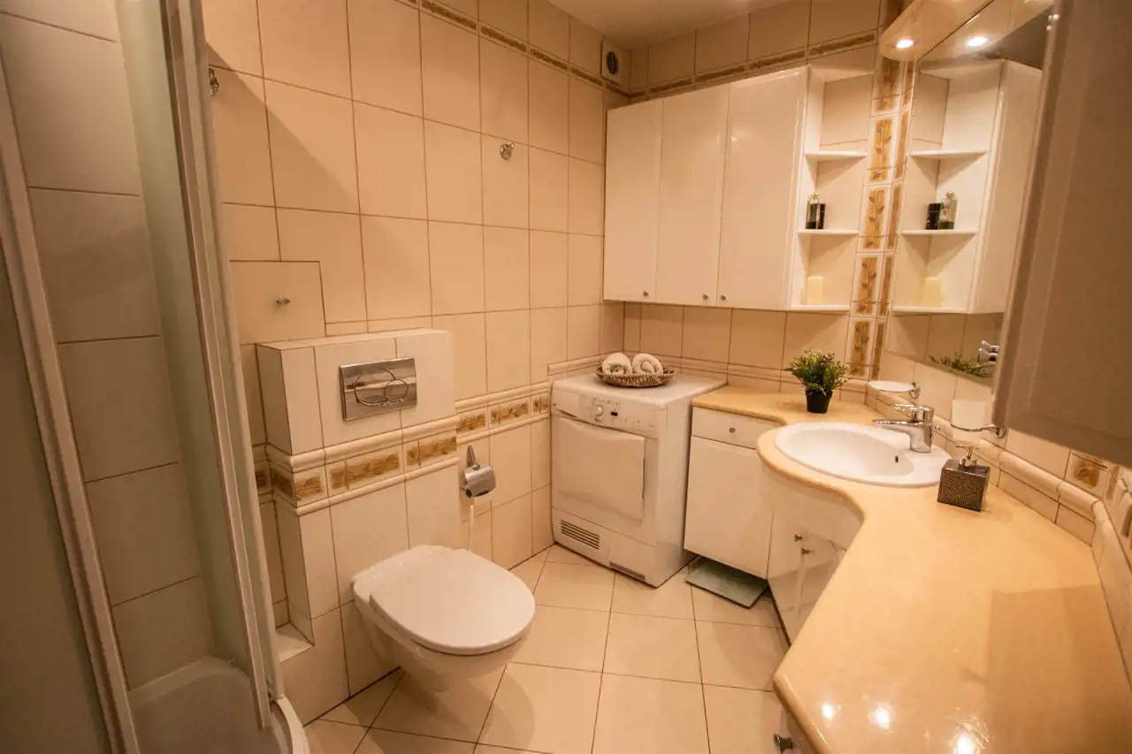 Dwie łazienki: wanna, a w drugiej prysznic wraz z WC