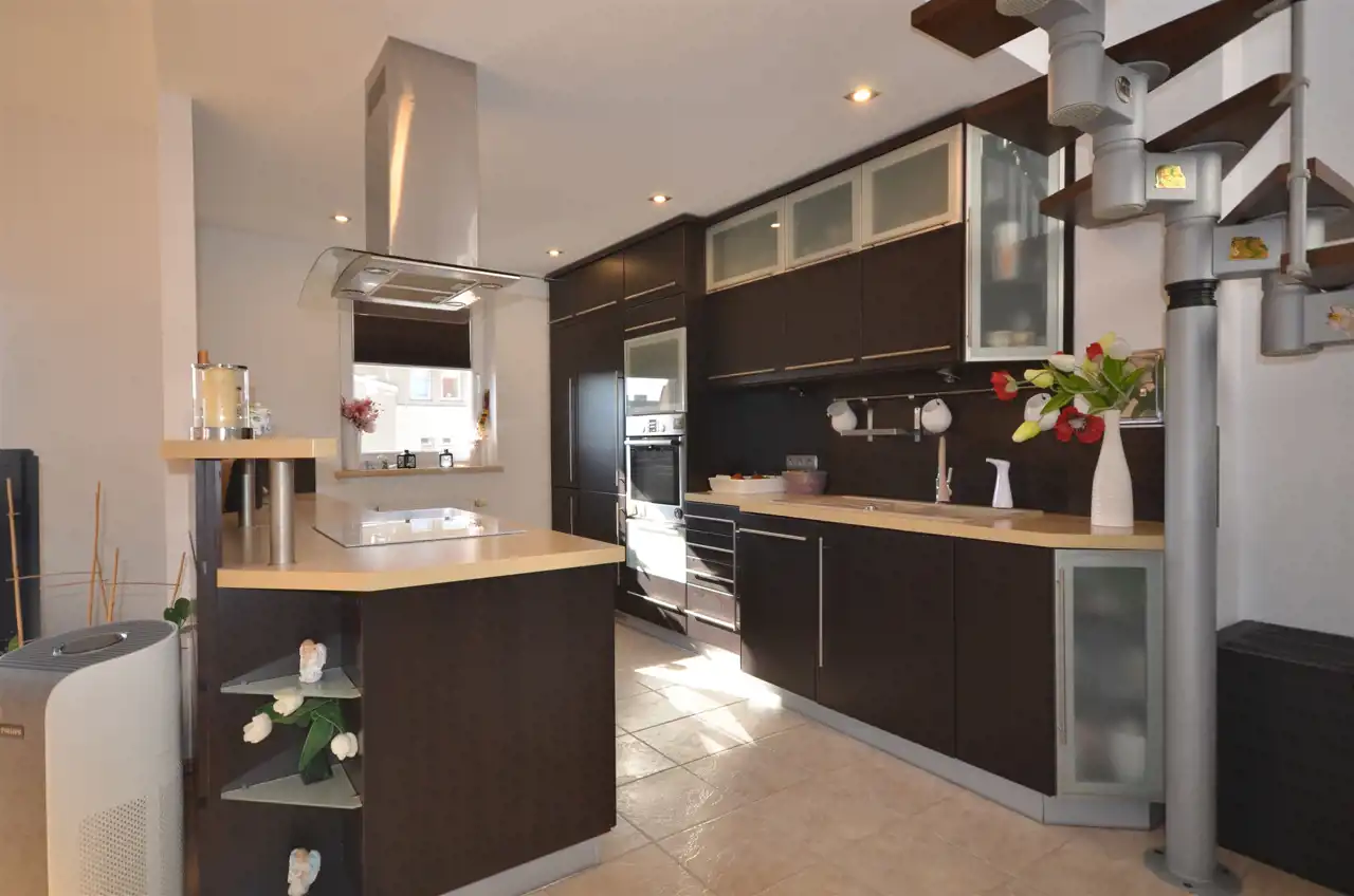 - nowoczesna kuchnia w zabudowie z wysokiej klasy sprzętem AGD, otwarta na część dzienną,