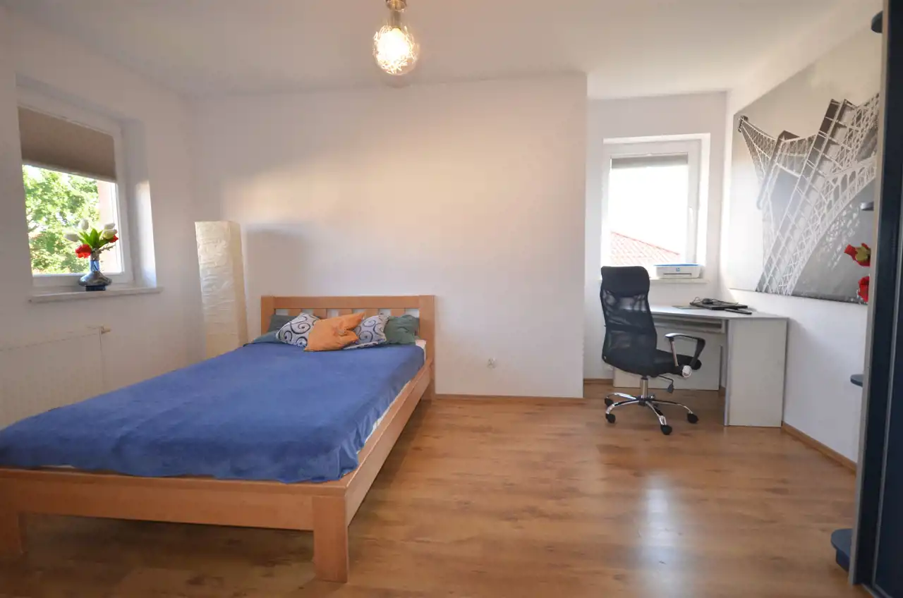 - dwie wygodne i ustawne sypialnie – każda z miejscem do pracy lub wypoczynku, jedna ze strefą do ćwiczeń
