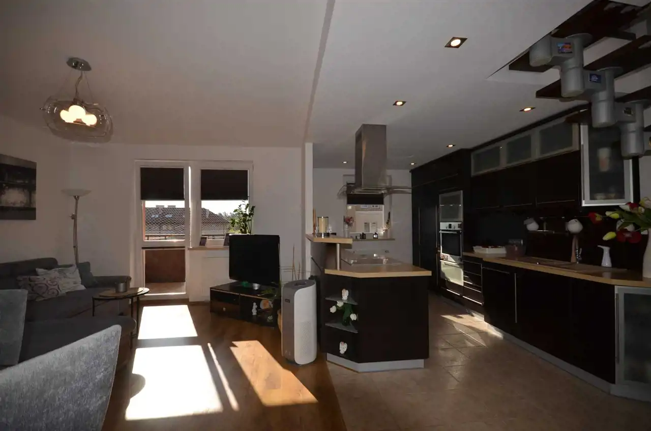 - jasny, przestronny salon z wyjściem na balkon– idealny na poranną kawę z ulubioną książką