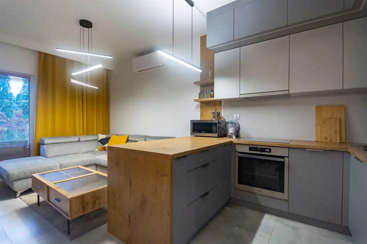 Mieszkanie umeblowane, wyposażane w trwałe zabudowy z dbałością o szczegóły. Ogrzewanie podłogowe, dodatkowo zamontowana klimatyzacja.