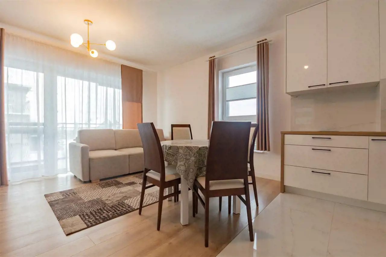 Oferuję do wynajęcia komfortowe, w pełni wyposażone mieszkanie o powierzchni 45,06 m², usytuowane na pierwszym piętrze nowoczesnego budynku oddanego do użytkowania w 2024 roku.