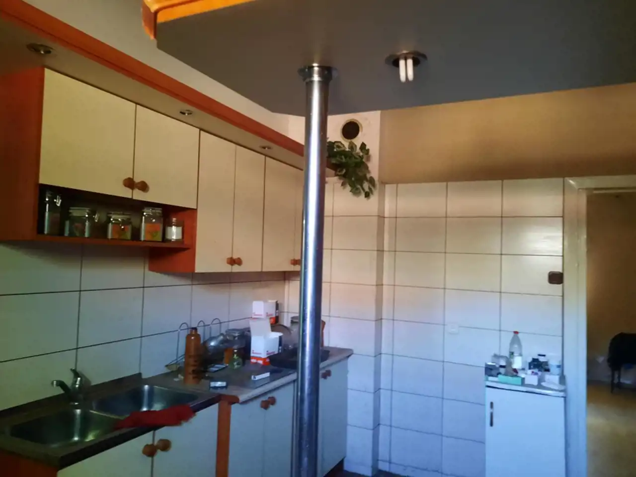 Parter: korytarz, duży salon z połączenia 2 pokoi, kuchnia z małą spiżarnią, łazienka.