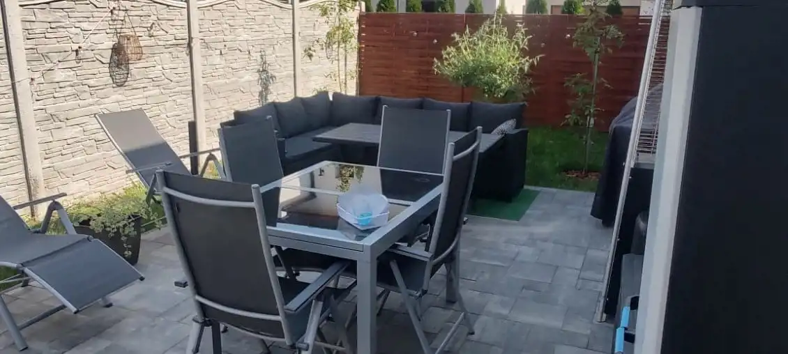 W cenie: meble kuchenne wraz ze sprzętem AGD, pełne umeblowanie i wyposażenie mieszkania wraz z meblami ogrodowymi i jaccuzi.