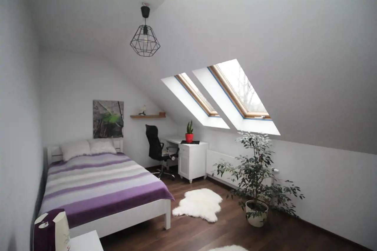 - poddasze: 4 pokoje, łazienka, garderoba