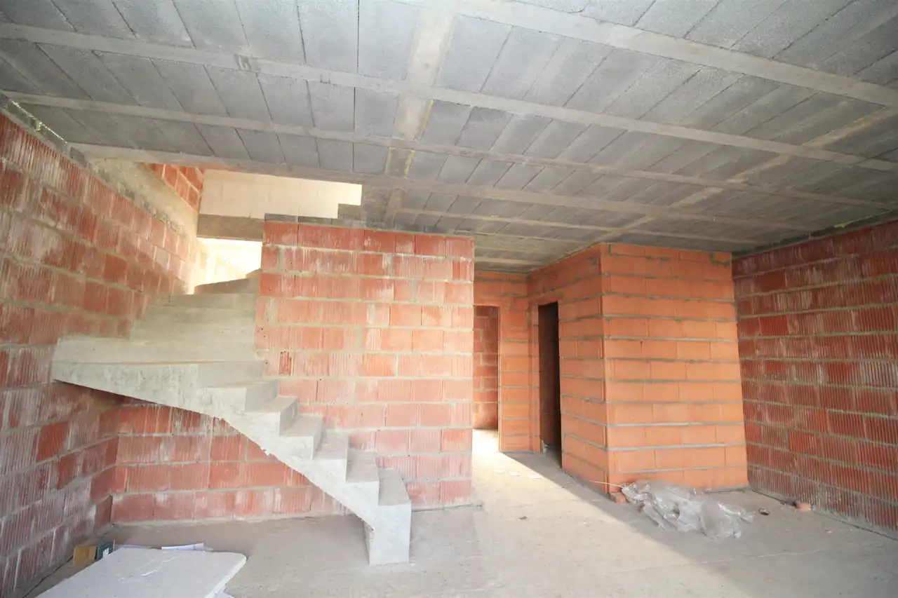 Budynki bliźniacze (odrębne ściany nośne) wykonane w technologii tradycyjnej - fundamenty, pustak ceramiczny porotherm, stropy prefabrykowane, dach płaski - ocieplony i pokryty papą, wykonana obróbka blacharska.