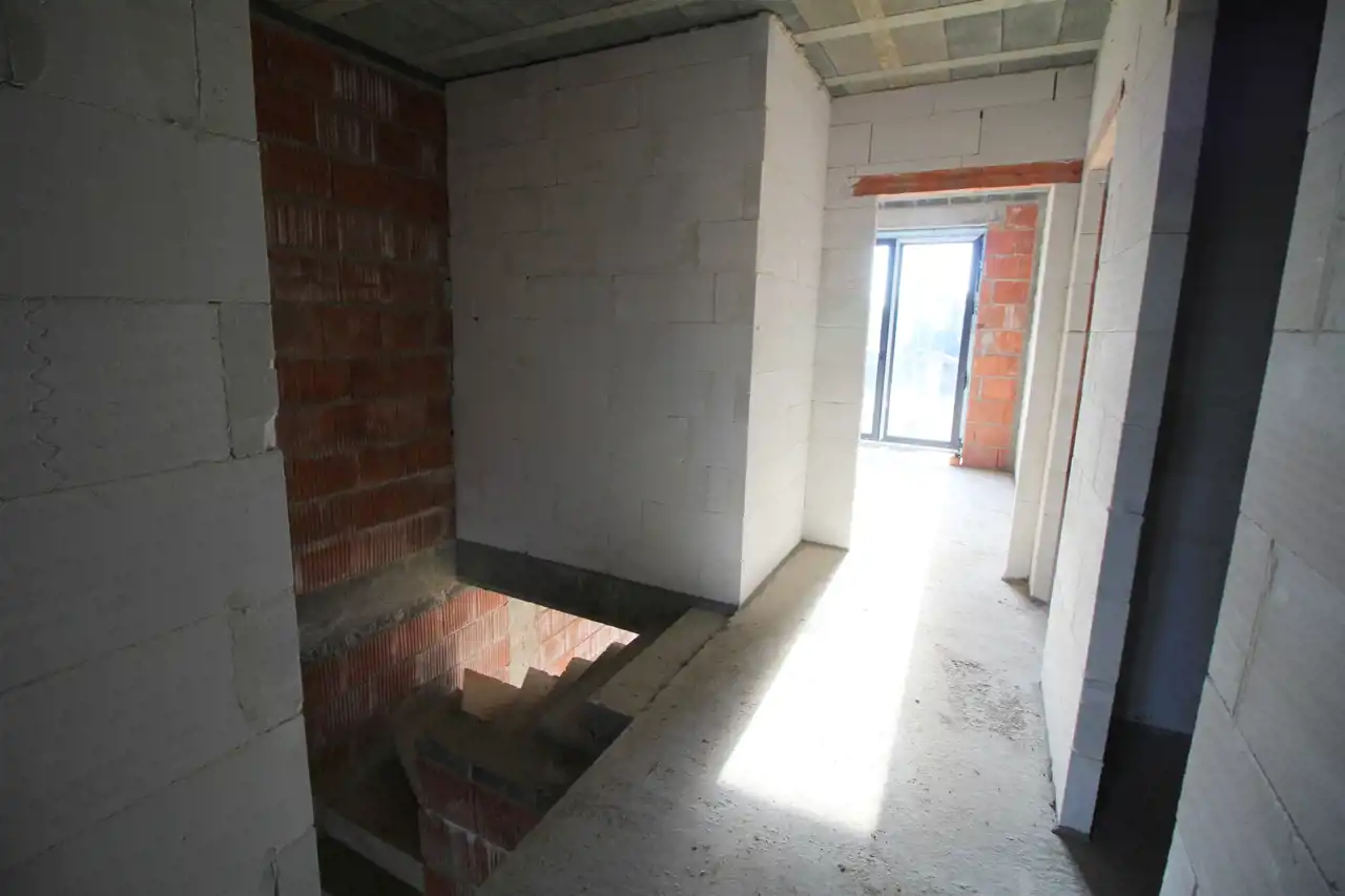 Wykończenie w stanie deweloperskim obejmuje wykonanie tynków wewnętrznych, rozprowadzenie instalacji oraz wylanie posadzki.