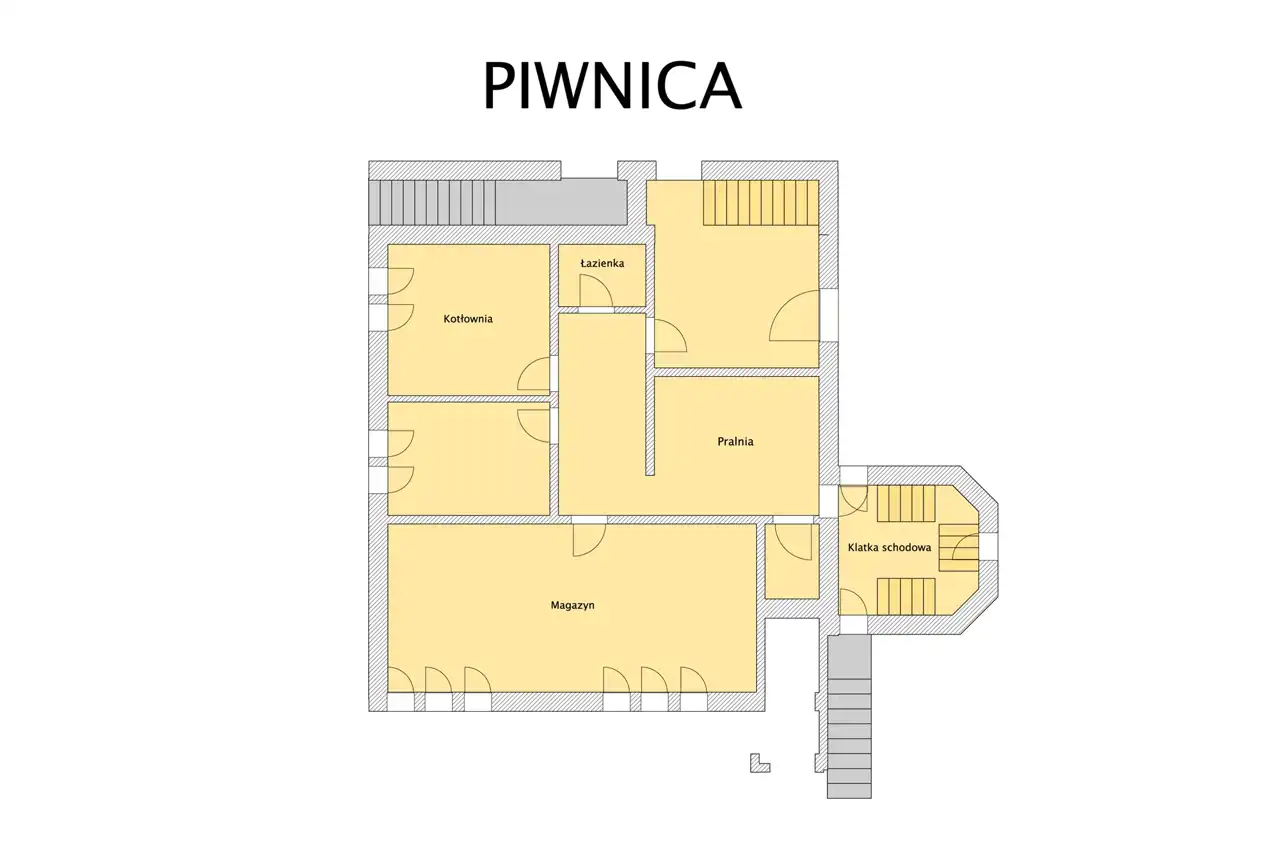 Rozbudowana część warsztatowa oraz duża powierzchnia piwnic zwiększają elastyczność użytkowania i możliwości operacyjne inwestora.