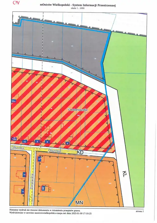 Oferujemy na sprzedaż działki budowlane położne w Ostrowie Wielkopolskim przy ul. Olszowej.