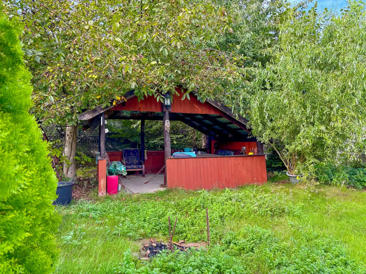 Na działce znajduje się również wolnostojący budynek gospodarczy (ok. 40 m²), pełniący funkcję garażu i dodatkowej przestrzeni magazynowej.