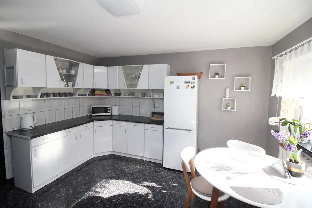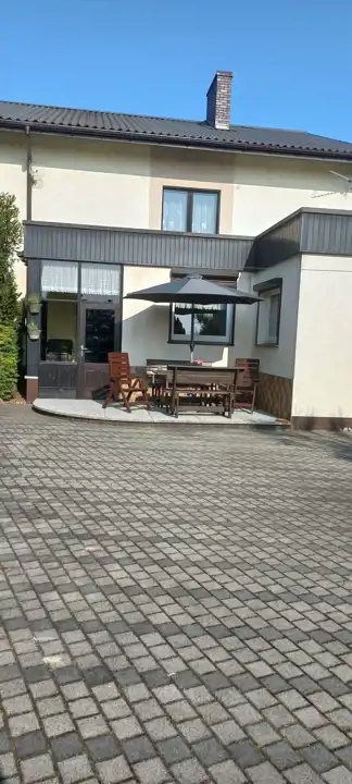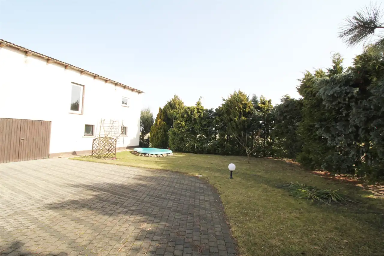 Budynek o pow. ok. 150 m2 znajduje się w części dobudowanej i składa się z głównego pomieszczenia, biura, osobnej kotłowni oraz wiaty. Budynek idealny na prowadzenie działalności gospodarczej typu magazyn czy usługi. Budynek posiada osobny wjazd z boku posesji.