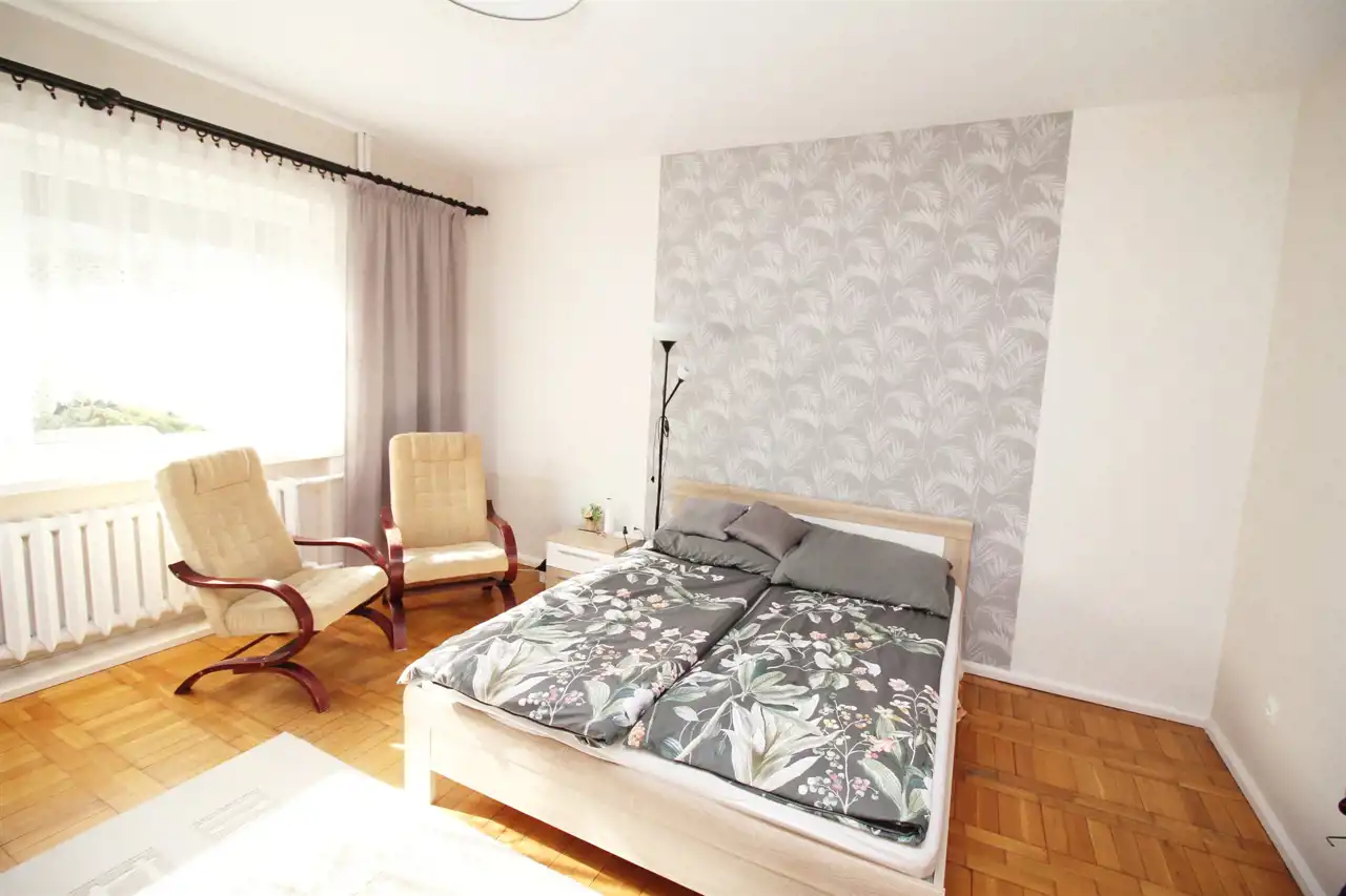 Dodatkowym atutem jest niezależne mieszkanie z osobnym wejściem z zewnątrz, co daje możliwości jego zagospodarowania przez właścicieli lub wynajęcie.