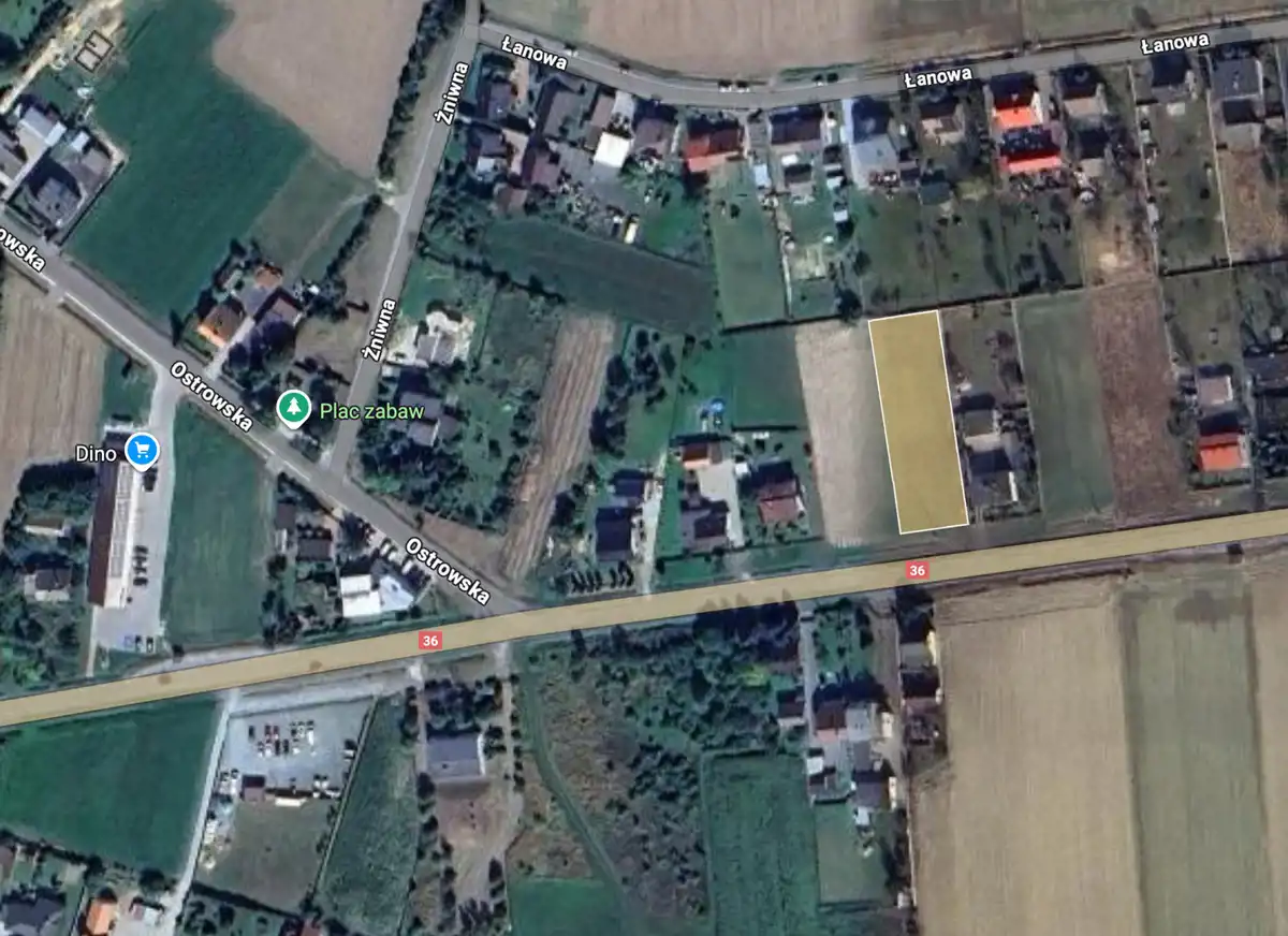 Działka położona jest w miejscowości Łąkociny (gmina Ostrów Wielkopolski), w odległości ok. 9,5 km od centrum Ostrowa Wielkopolskiego. Zlokalizowana bezpośrednio przy drodze asfaltowej – ul. Krotoszyńskiej (DK36) – zapewnia szybki dojazd zarówno do Ostrowa, jak i Krotoszyna.