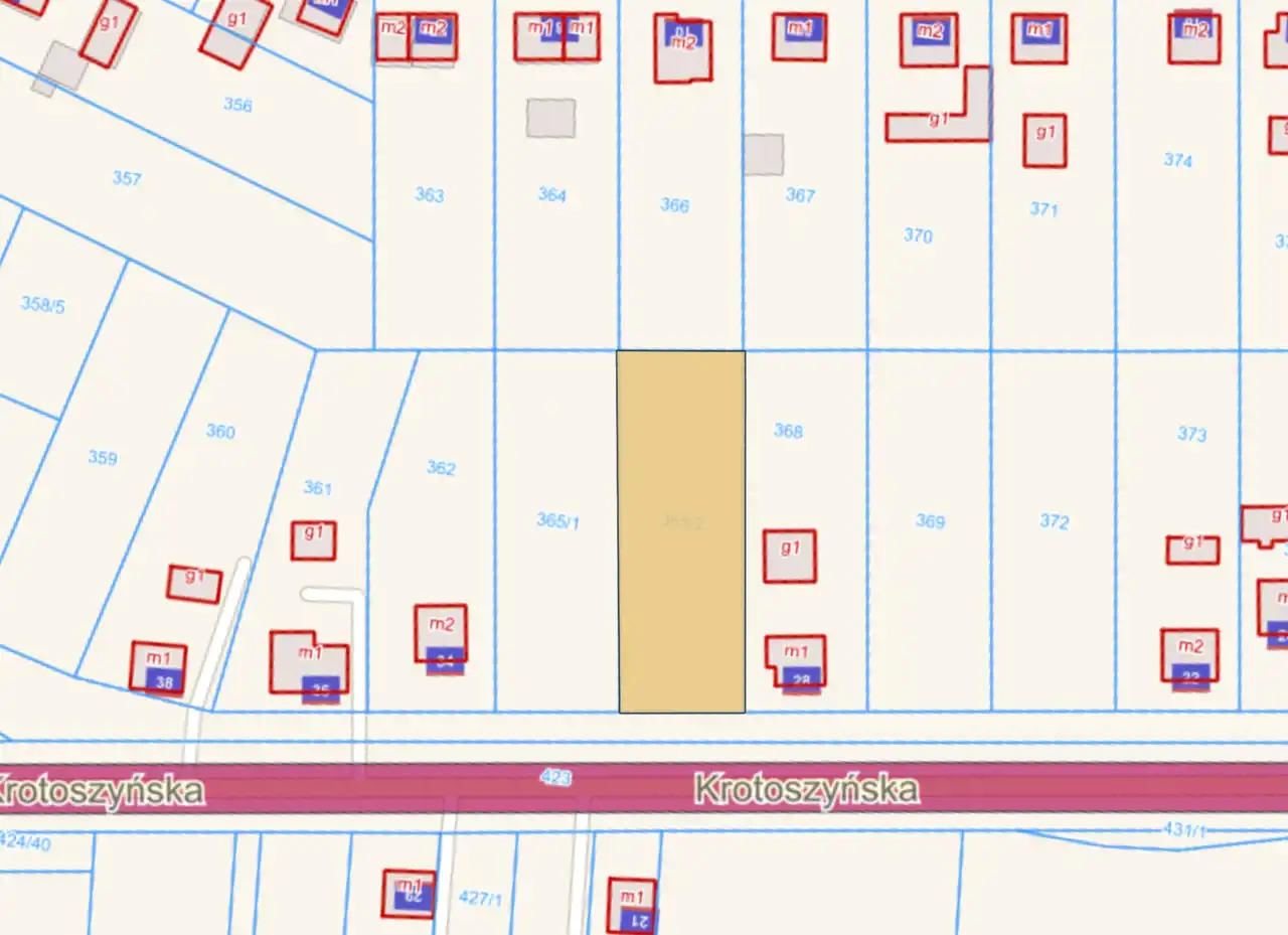 Obecnie grunt ma status rolny klasy RIIIb. Brak miejscowego planu zagospodarowania przestrzennego – zgodnie z projektowanym na dzień dzisiejszy planem ogólnym teren będzie przeznaczony pod zabudowę mieszkaniową jednorodzinną z dopuszczeniem usług nieuciążliwych.