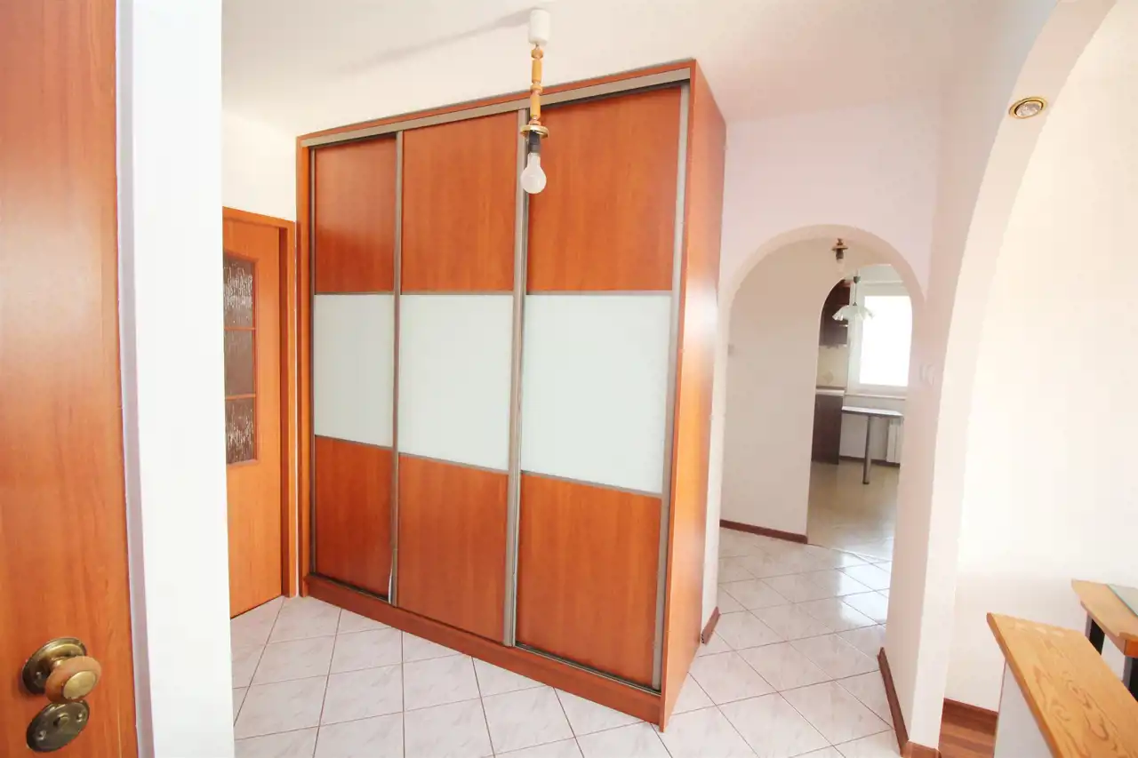 W przedpokoju oraz w małym pokoju znajdują się pojemne szafy garderobiane w zabudowie.