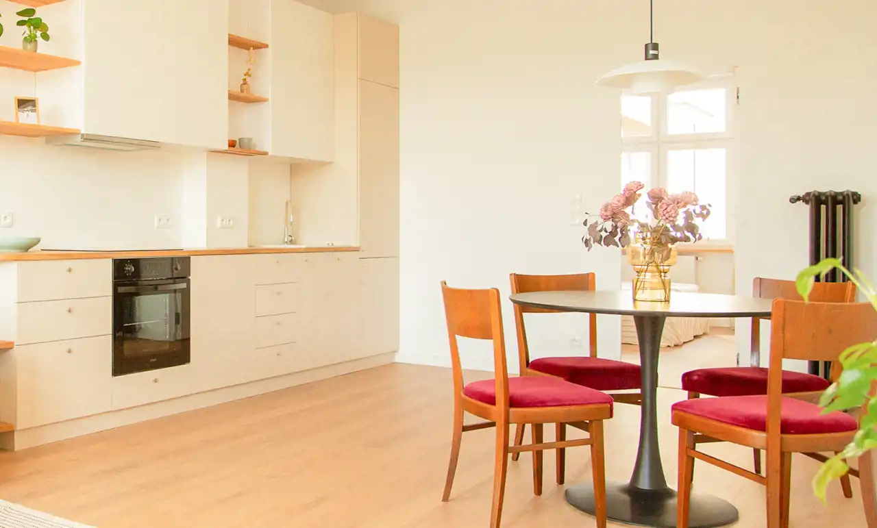 Mieszkanie po generalnym remoncie – wymienione instalacje elektryczne, hydrauliczne i grzewcze oraz nowe okna. Wnętrze dobrze doświetlone, z sufitami o wysokości 290 cm. W korytarzu i kuchni zastosowano zabudowy na wymiar, a elementy drewniane wykonano z litego dębu, co nadaje wnętrzu solidny i naturalny charakter. Na podłodze znajdują się wysokiej jakości panele.