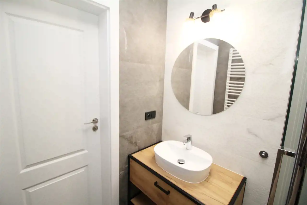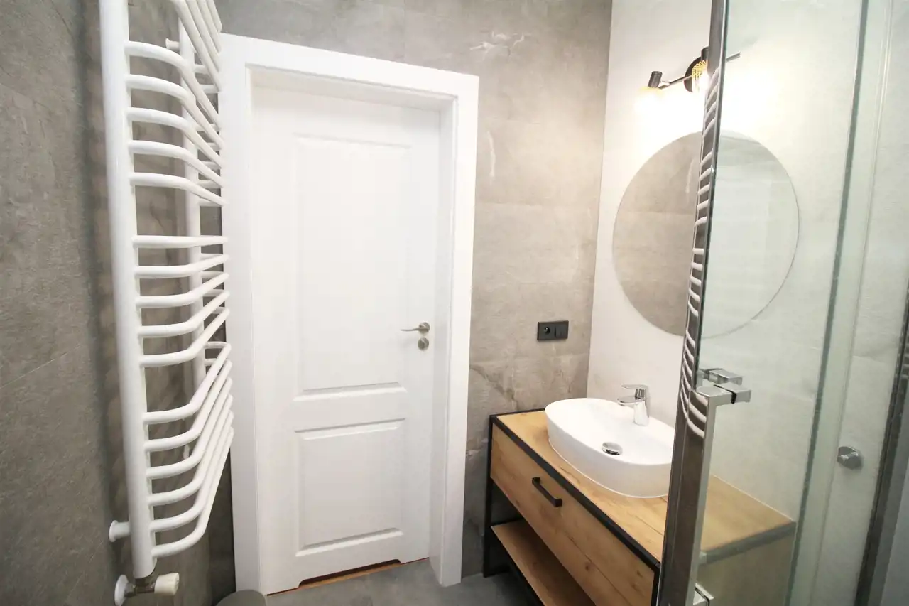 Łazienka funkcjonalnie urządzona z kabiną prysznicową.