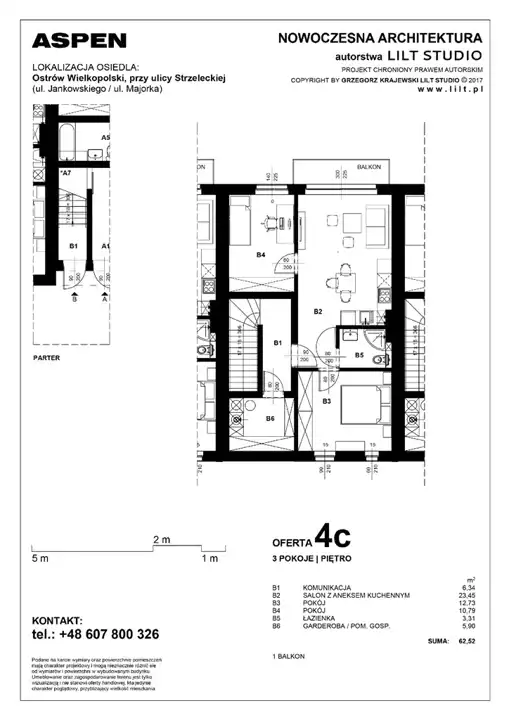- Charakterystyka mieszkania 62.52 m2, 3 pokoje