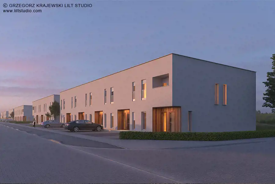 Mieszkanie położone jest na piętrze segmentu w zabudowie szeregowej, posiada powierzchnię 62,52 m2 i składa się z następujących pomieszczeń: