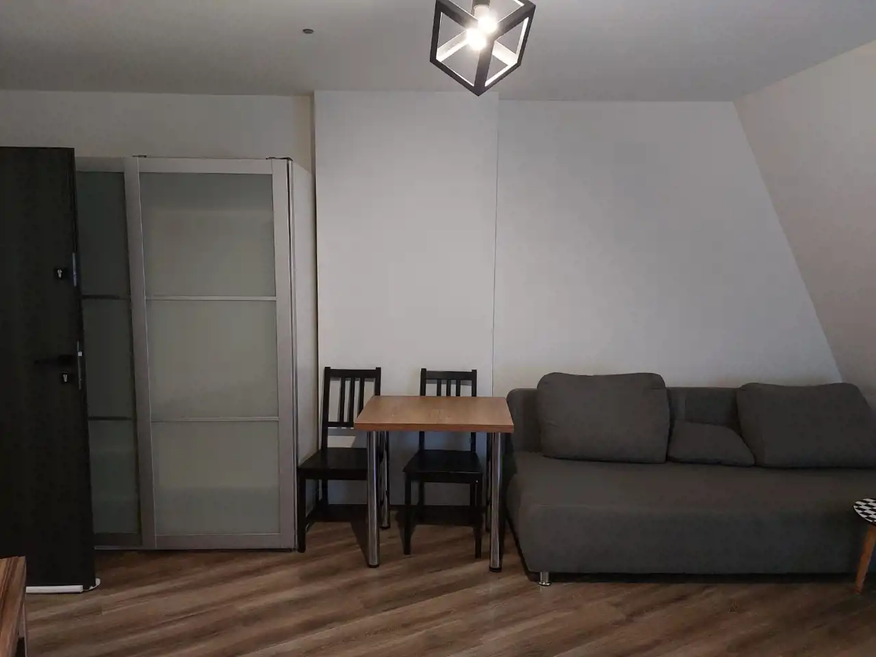 Mieszkanie o pow. ok. 18 m2 składa się z jednego pokoju z aneksem kuchennym oraz łazienki. Umeblowane i wyposażone - gotowe do objęcia. Łazienka wykończona w glazurze nowego typu z kabiną prysznicową. Kuchnia z zabudową kuchenną oraz sprzętem AGD. Na podłogach znajdują się panele i płytki. Ogrzewanie oraz ciepła woda z indywidualnego pieca gazowego dwu-funcyjnego.
