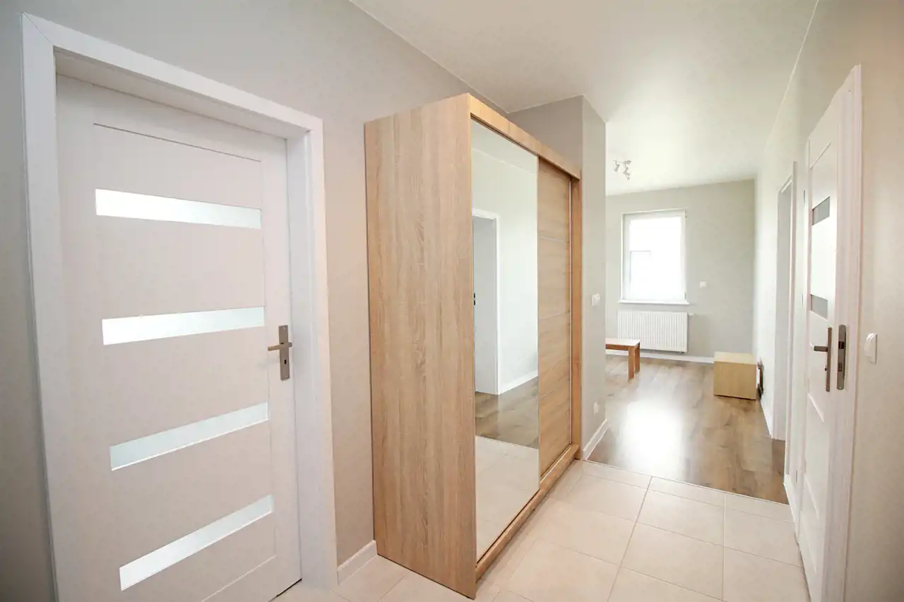 W przedpokoju znajduje się pojemna szafa garderobiana w zabudowie.
