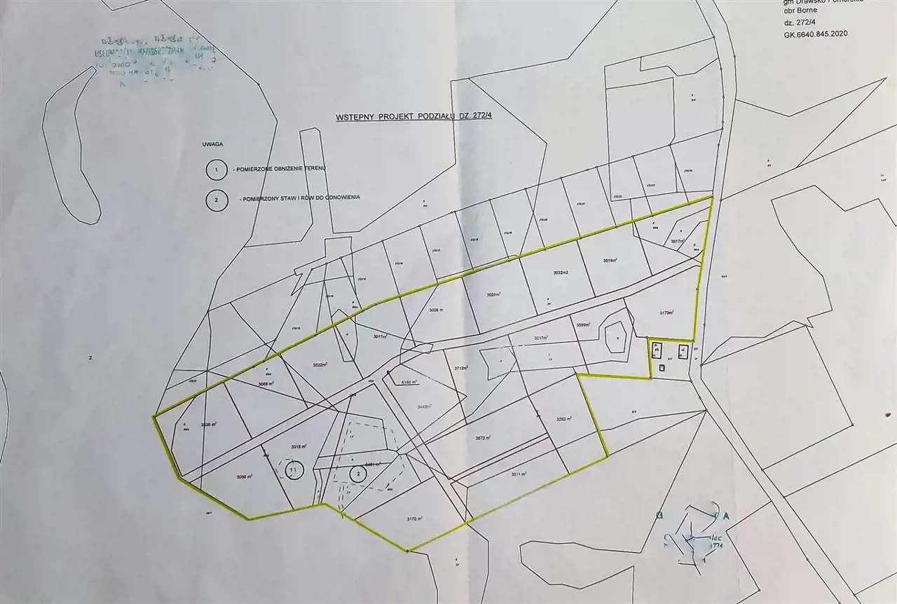 - Działka Niezagospodarowana, lekko nachylona, prostokąt