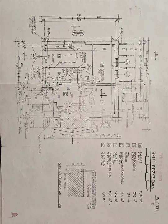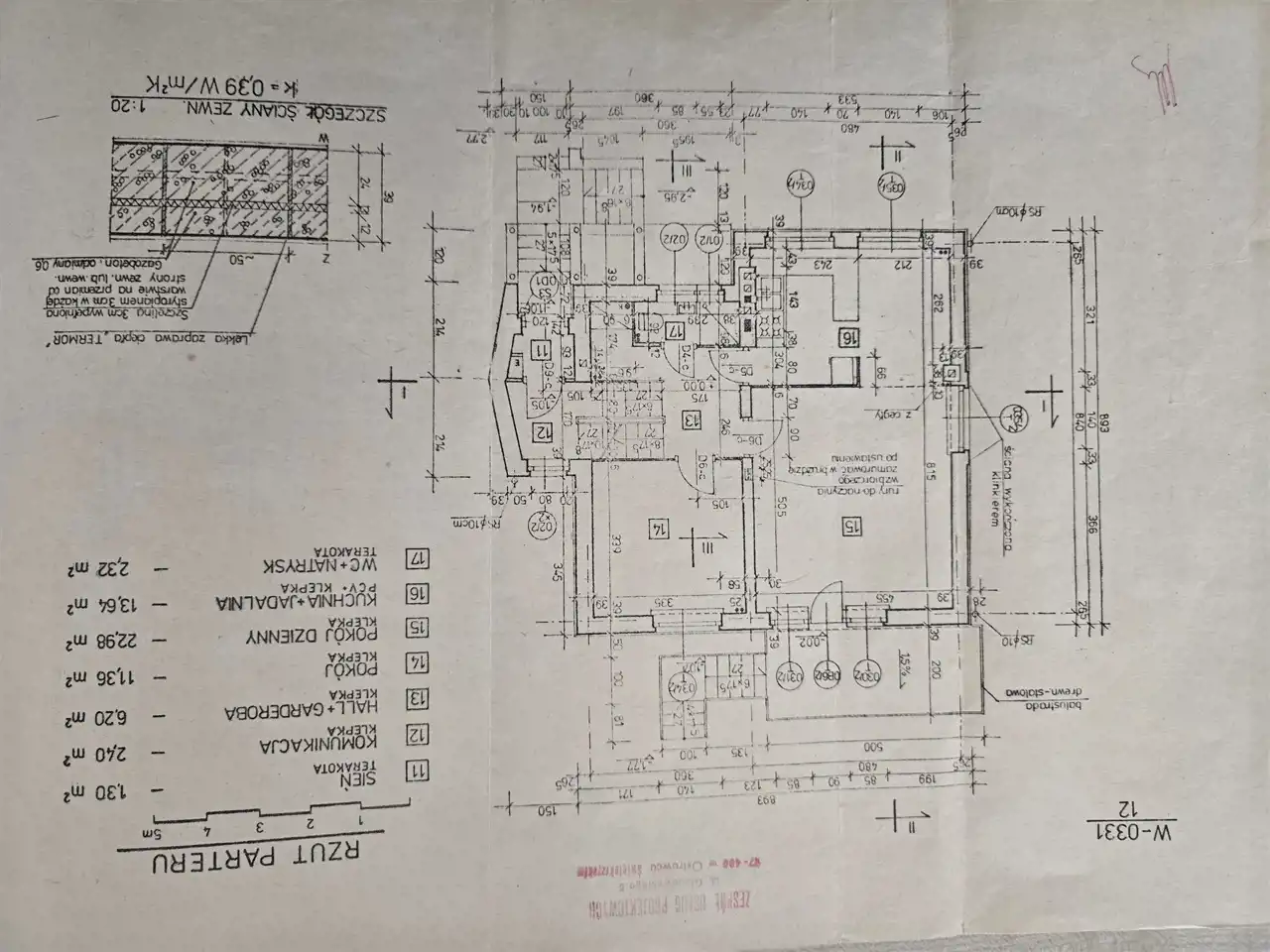 Dom o powierzchni całkowitej 204 m2 i użytkowej ok.120-160 m2 (budowa w latach 90-tych, gdzie uwzględniono garaż w bryle budynku oraz gabinet na parterze a także poddasze użytkowe o wys. 190 cm z pokojami do zabudowy.