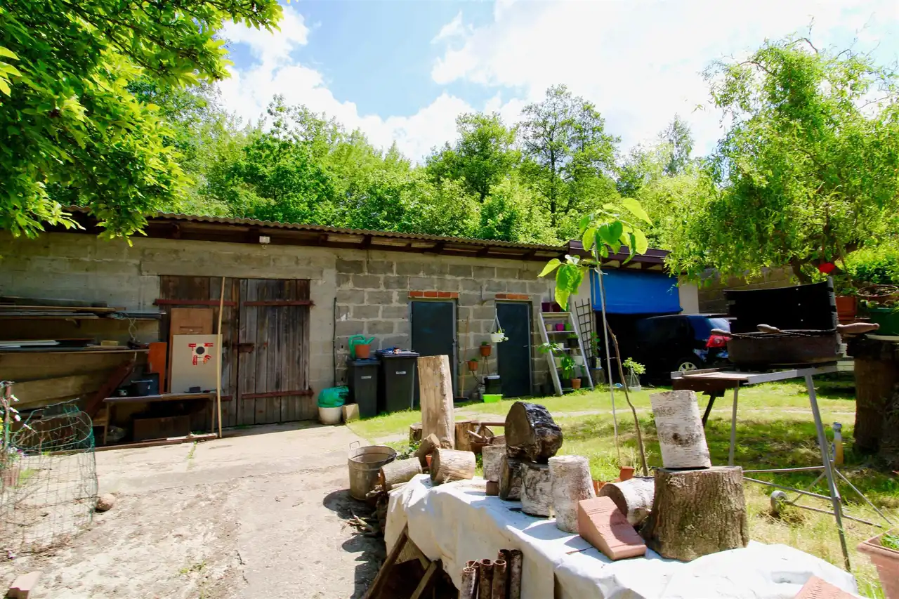 Na terenie posesji także budynek murowany z garażem oraz komórkami gospodarczymi.
