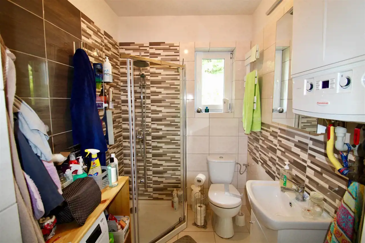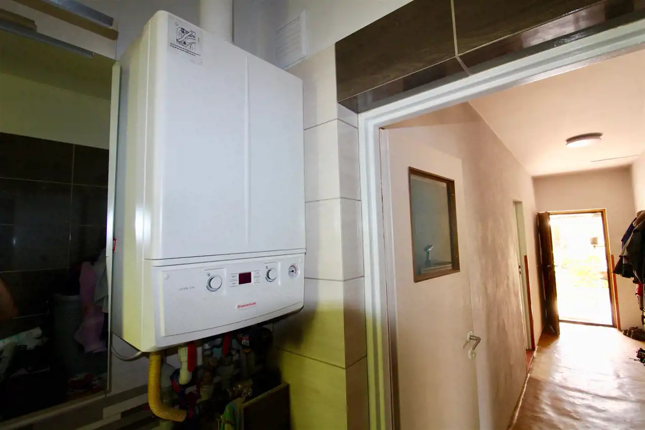 Media; prąd, woda, gaz, kanalizacja, ogrzewanie piecem węglowym oraz nowym piecem gazowym dwu-funkcyjnym, podstawowy materiał budowlany pustak, dach kryty eternitem.