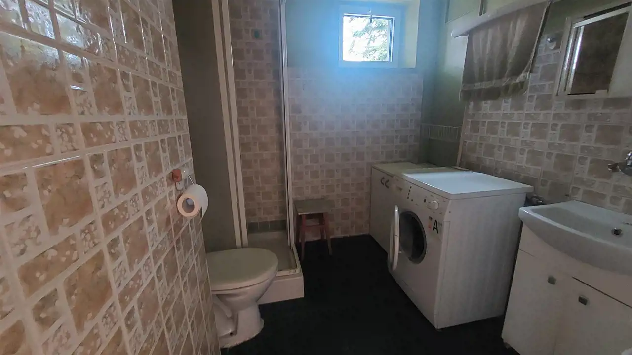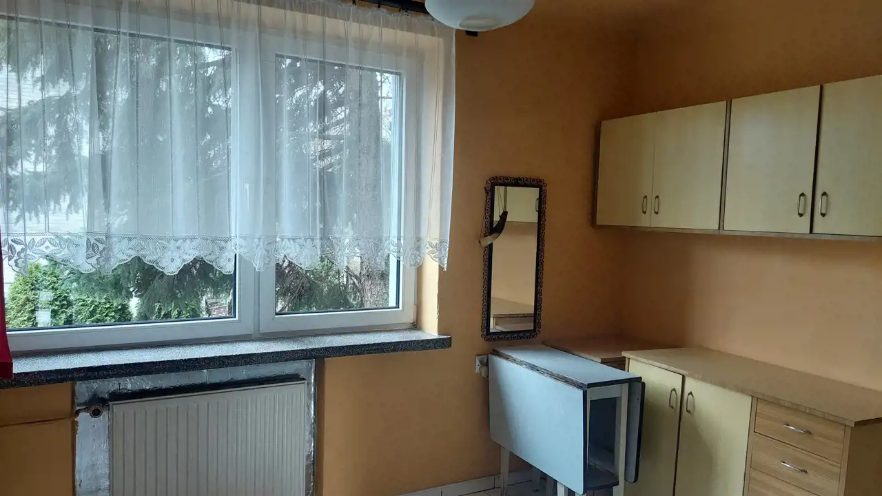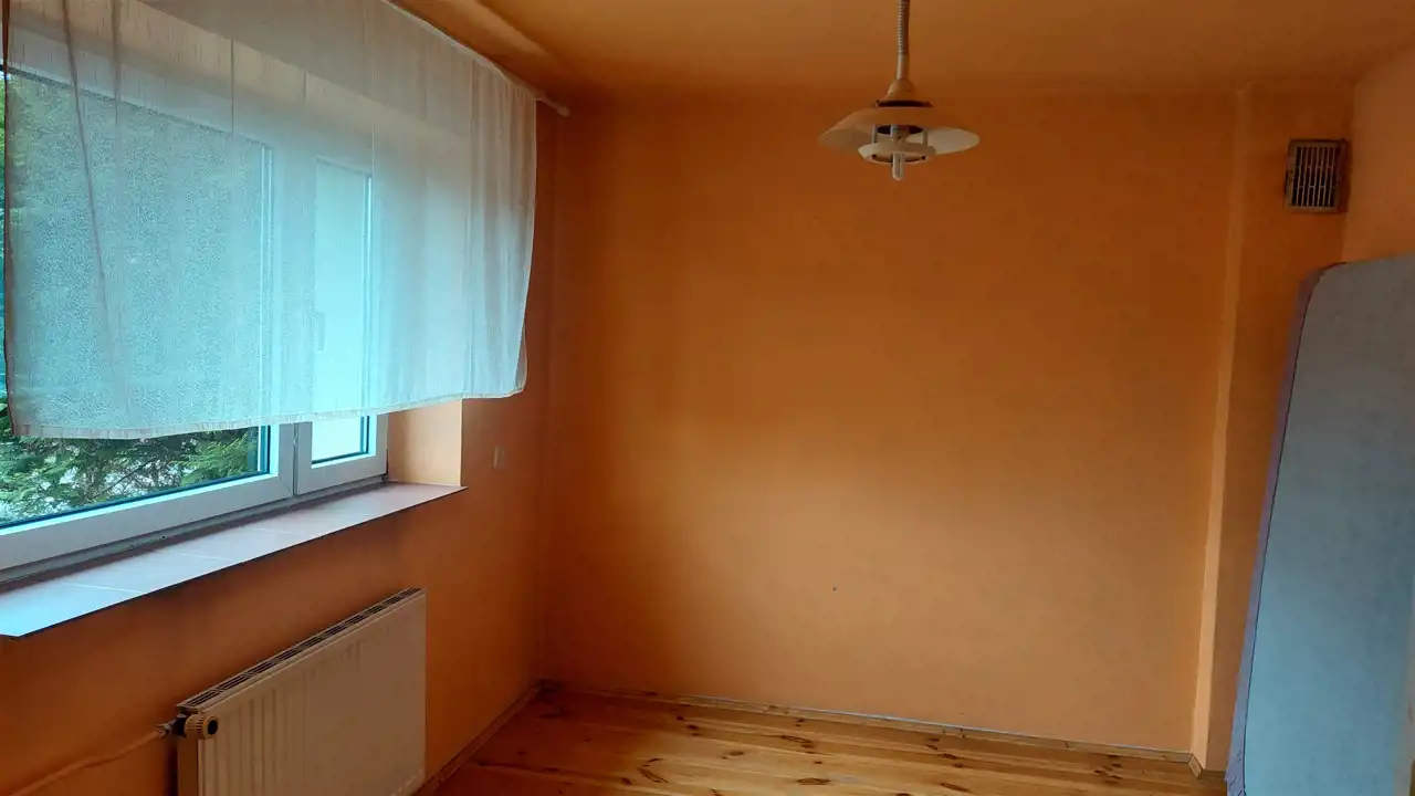 - Dom z lat 70-tych po rozbudowie i modernizacji w latach 90-tych. Starsza częć domu budowana z białej, pełnej cegły, pustka ocieplona pianką poliuretynową; okna PCV; dach płaski kryty papą.