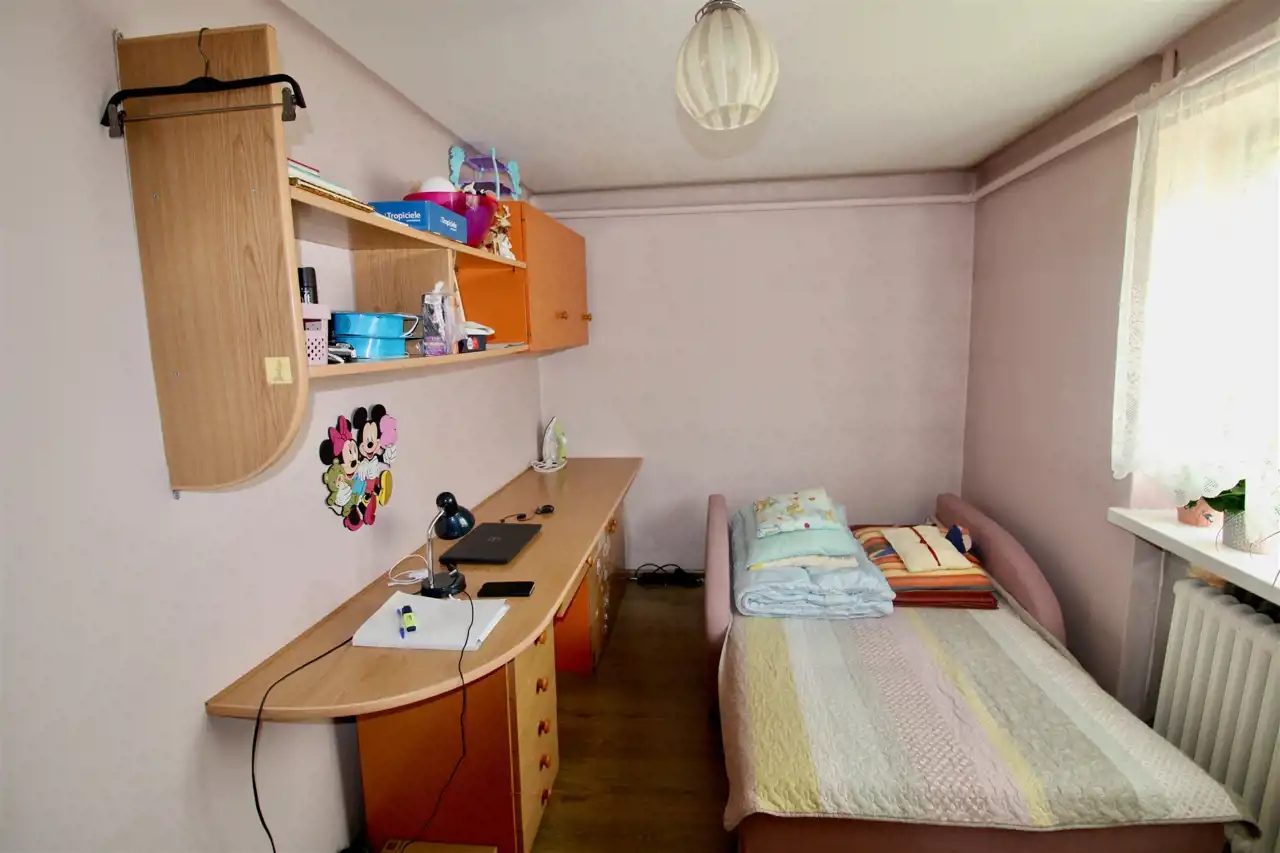 Na pierwszym piętrze domu znajdują się 2 duże oraz dwa mniejsze pokoje z wejściem z przedpokoju.