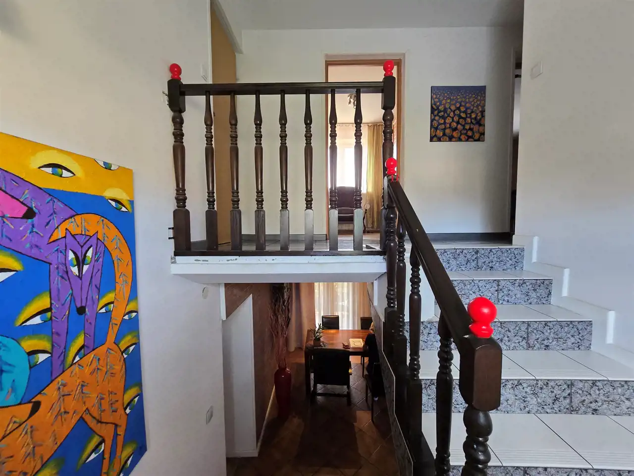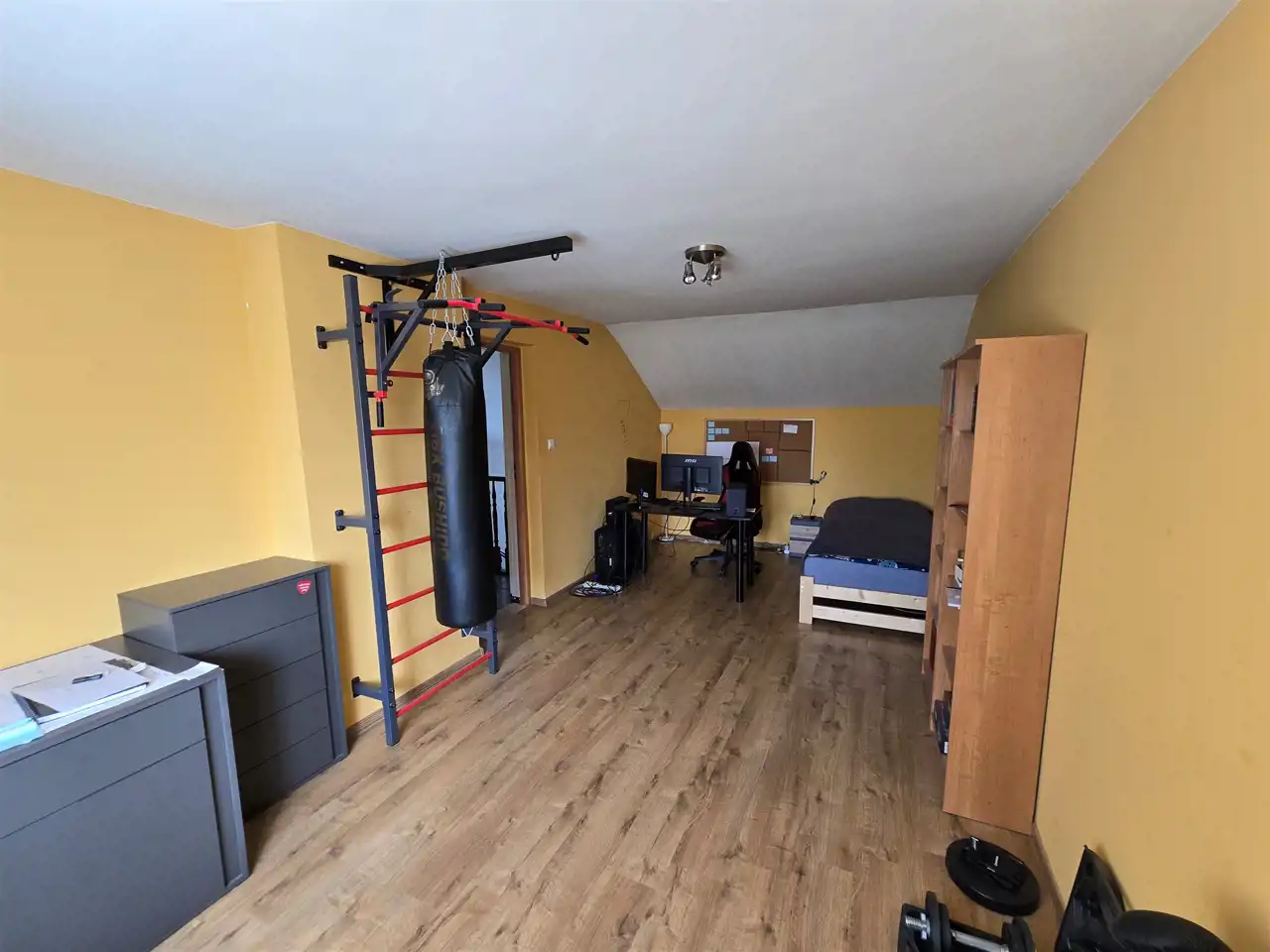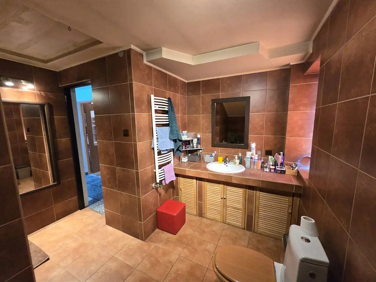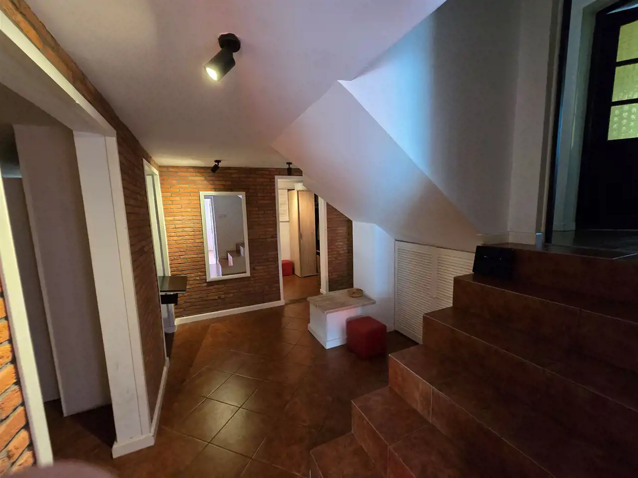 łazienka z WC oraz pracownia o pow. ok. 50 m2, na półpiętrze znajduje się kolejny pokój, na pierwszej kondygnacji 2 pokoje, łazienka z WC, kuchnia z jadalnią, na 2-giej kondygnacji 3 sypialnie z łazienką.