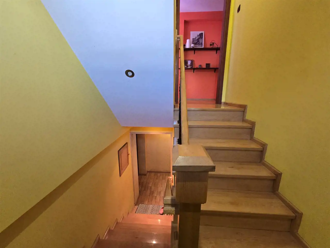 Schody prowadzące na piętro z drewna bukowego.Wysokie poddasze użytkowe do zagospodarowania powyżej.