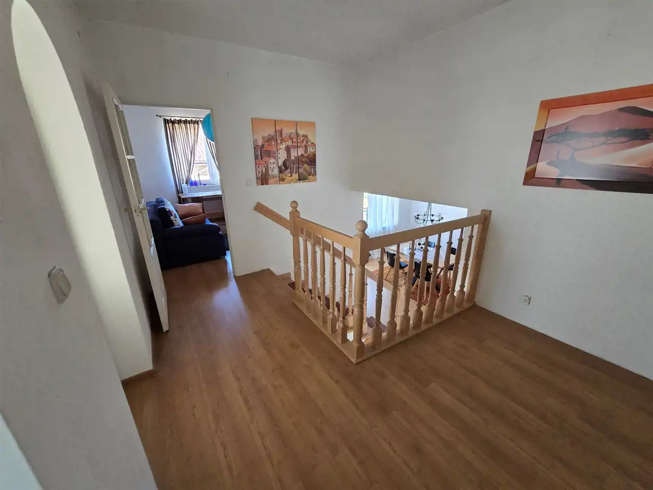 Na pierwszym piętrze znajduje się kolejna sypialnia oraz dwa kolejne pokoje do wykończenia (podłoga i gładzie na ścianach), wykończenia wymaga także druga łazienka i oddzielne WC.
