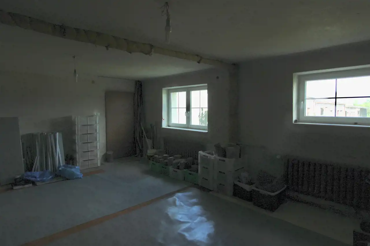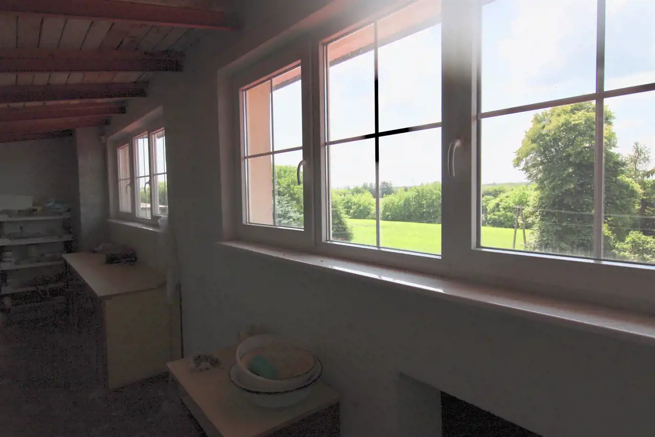 Nad częścią mieszkalną także wysokie poddasze użytkowe z oknami PCV do zagospodarowania.