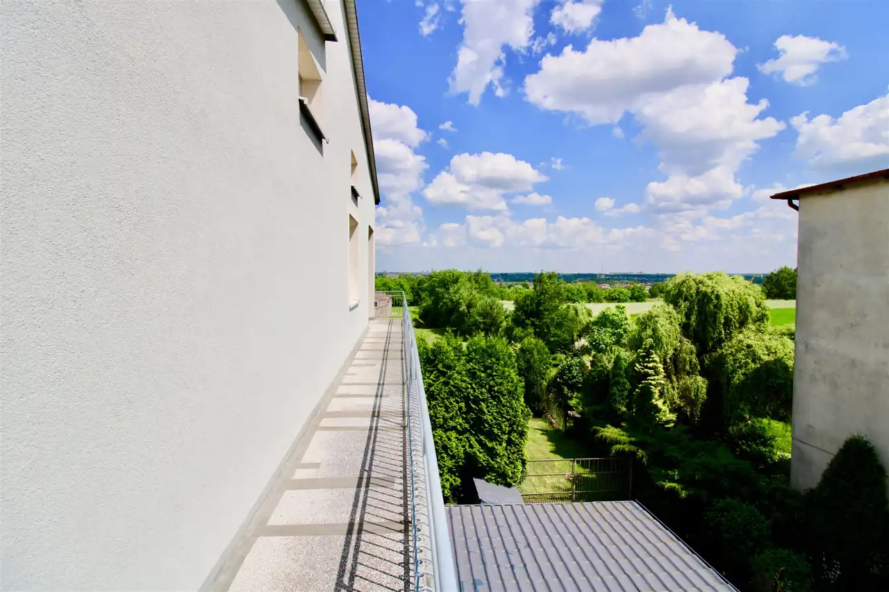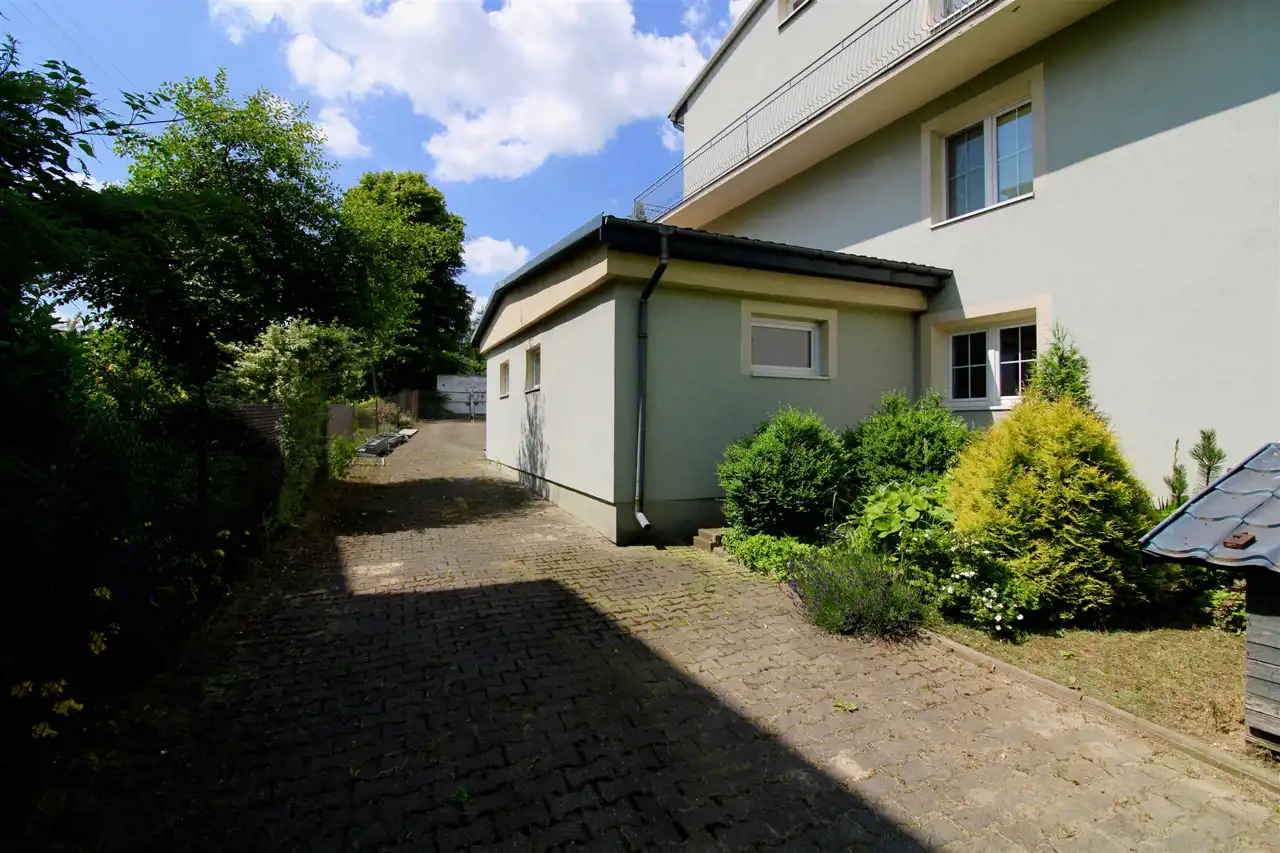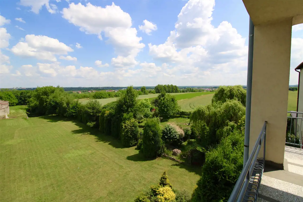 Dom sytuowany w cichej uliczce na skraju miasta z pięknym widokiem na panoramę miasta.