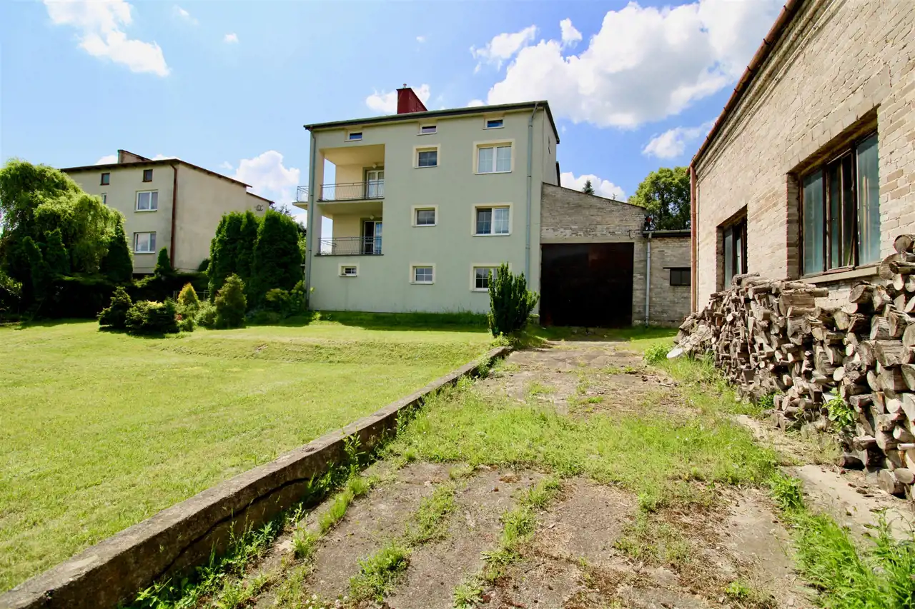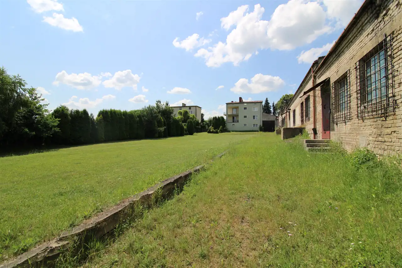 Sąsiedztwo działki tworzą budynki gospodarcze a lat 80-tych z szeroką działką graniczącą na całej długości z oferowaną nieruchomością. Przy budynku olbrzymi garaż na 3-4 pojazdy.