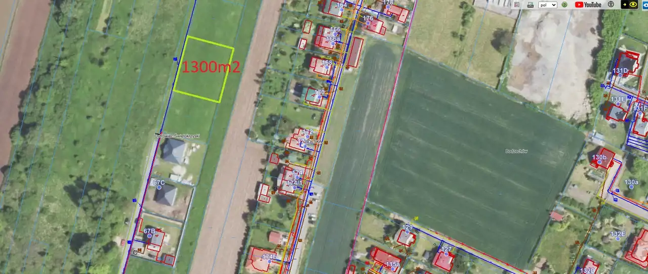 Działka powstała z podziału nieruchomości gruntowej na 10 działek budowlanych. Nasza podmiotowa jest siódmą z kolei z wydzielonych od ul. Stalowej. Dojazd od ul. Stalowej jedną z bocznych dróg (w części utwardzona i wyżwirowana). Droga tzw. "ślepa", przez co spokojnie i b. bezpiecznie, przysłowiowo " Jak u p. Boga za piecem". W sąsiedztwie, na pierwszych wydzielonych działkach już stoją domy, nowe budownictwo.