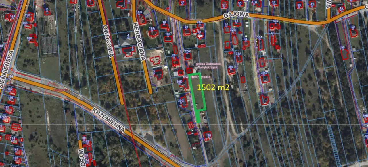 Działka leży przy bocznej, ślepej uliczce, od nowo powstałej obwodnicy miasta Ostrowca Św., ul. Krzemiennej, przedłużenia ul. Rzeczki do Samsonowicza.